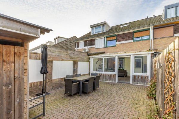De achtertuin van ruim 11,5 meter diep biedt verrassend veel mogelijkheden. Dankzij de ligging op het noord oosten kun je hier heerlijk genieten van de ochtendzon. In de serre zit je ook bij minder weer heerlijk buiten. Hier is licht, elektra en wateraansluiting aanwezig. Achterin de tuin staat een stenen en houten berging, beide uitgerust met verlichting en elektra. Dankzij de vrije achterom is de tuin ook praktisch in gebruik. De vrije achterom biedt toegang tot een speelveldje, waar kinderen lekker kunnen ravotten.