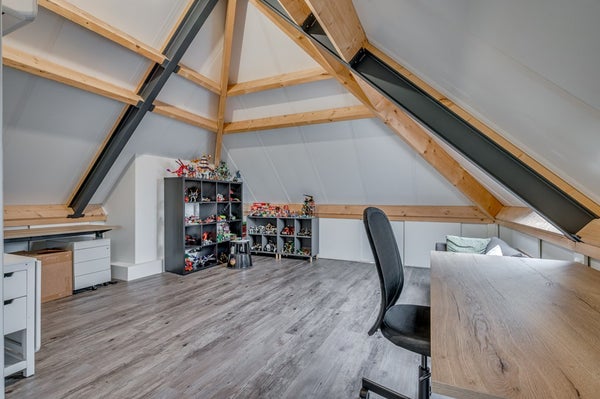De gehele verdieping is voorzien van vloerverwarming en een fraaie PVC vloer.