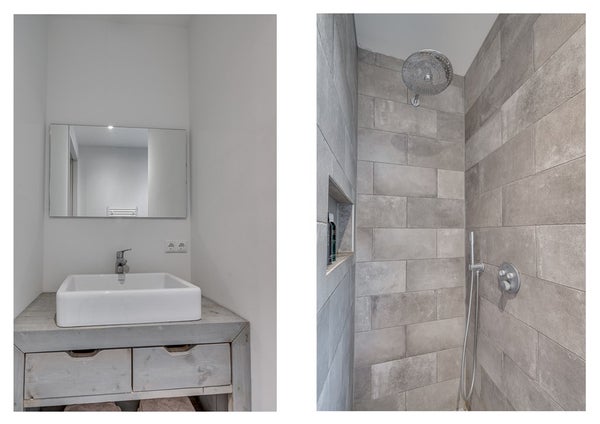 2e badkamer met inloopdouche en wastafelmeubel.
