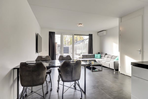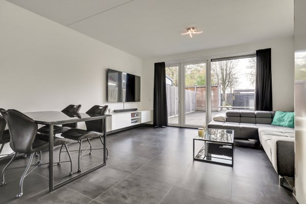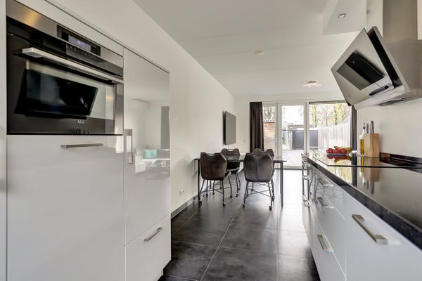 Deze instapklare tussenwoning, gebouwd in 2019, biedt een woonoppervlakte van 111 m² en een perceeloppervlakte van 122 m². De woning is volledig geïsoleerd en heeft energielabel A. Bij binnenkomst in de hal vind je een lichte woonkamer met airco en openslaande tuindeuren. De open keuken is goed uitgerust en biedt vrij zicht op de straat. Op de eerste verdieping bevinden zich drie slaapkamers, ook met vloerverwarming en laminaatvloeren, plus een ruime badkamer met inloopdouche. De grote zolder is bereikbaar via een vaste trap en biedt aanvullende ruimte voor een vierde slaapkamer of hobbyruimte. De onderhoudsarme achtertuin op het zuiden grenst aan een groenvoorziening, wat extra privacy en uitzicht biedt. Dak-, spouw-, en vloerisolatie zorgen voor lage energiekosten.