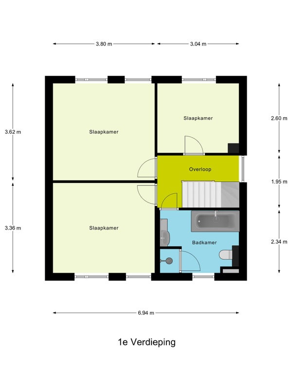 - De tussenwoning heeft een woonoppervlakte van 113 m² en beschikt over 5 kamers, waarvan 4 slaapkamers;