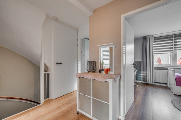 Op de tweede verdieping bevindt zich een overloop met bergruimte, een extra slaap-/werkkamer met dakraam en een C.V.-/wasruimte. Deze verdieping is ideaal als thuiswerkplek, hobbyruimte of logeerkamer.