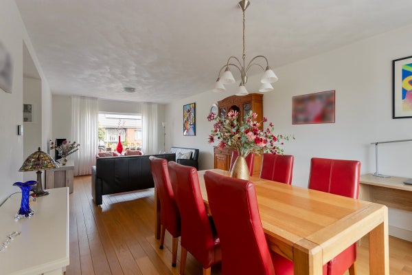 Deze twee onder een kapwoning met garage is gelegen op een rustige locatie in Hout-Blerick en biedt een woonoppervlakte van 133 m² op een perceel van 308 m². Gebouwd in 1982, is de woning goed onderhouden en heeft een ruime woonkamer met veel lichtinval en een massief eiken vloer. De halfopen keuken is uitgerust met een lichte inbouwkeuken, inclusief moderne apparatuur. Op de eerste verdieping bevinden zich drie ruime slaapkamers en een badkamer met dubbele wastafel, douche en toilet. De zolderverdieping is bereikbaar via een vaste trap en biedt een grote zolderkamer en bergruimte. De achtertuin, die op het zuiden ligt, biedt veel privacy en is voorzien van een overkapping. De woning is uitgerust met dak- en spouwisolatie, dubbel glas en rolluiken.