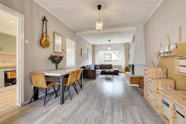 Deze charmante tussenwoning uit 1926 bevindt zich in Venlo-Blerick, dichtbij het gezellige Lambertusplein en voorzieningen. Met een woonoppervlak van 114 m² en een inhoud van 543 m³, biedt het huis 6 kamers, waaronder 3 slaapkamers op de eerste verdieping. De ruime, uitgebouwde woonkamer beschikt over een sfeervolle haard en een eetkamer met lichtkoepel. De keuken is uitgerust met moderne inbouwapparatuur. Op de zolder, bereikbaar via een vaste trap, is er een grote open ruimte met authentieke houten spanten, ideaal voor 2 extra slaapkamers. De diepe achtertuin op het zonnige zuiden is onderhoudsvriendelijk en biedt een gezellige overkapping voor ontspanning. Deze woning heeft kunststof en houten kozijnen met dubbel glas.