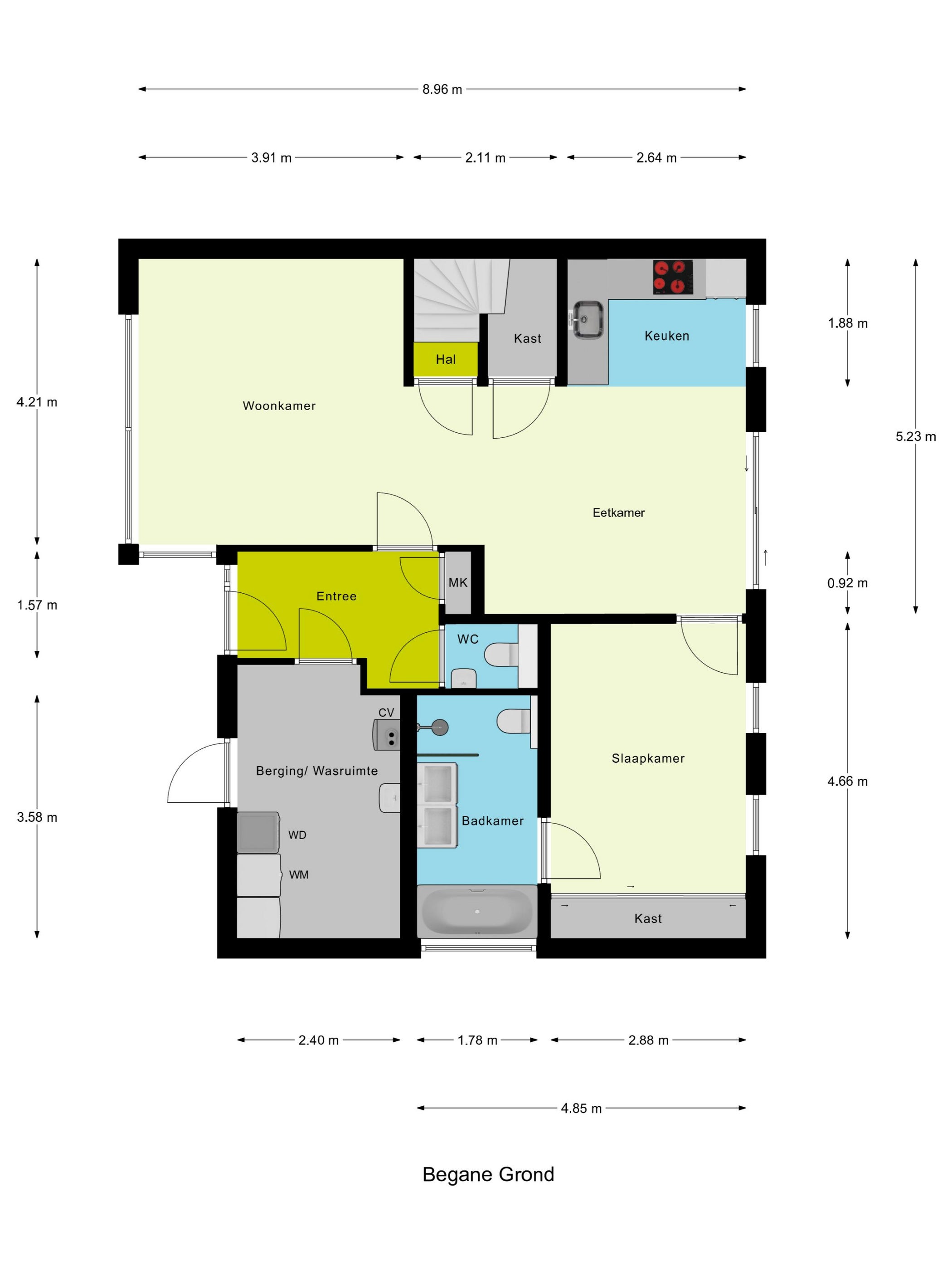 - De tussenwoning heeft een woonoppervlakte van 109 m² en beschikt over 4 kamers, waarvan 3 slaapkamers;