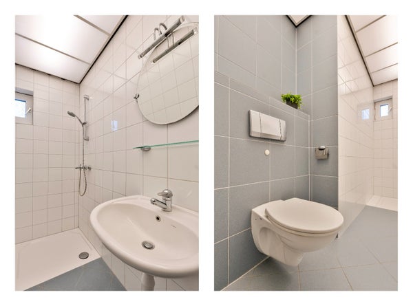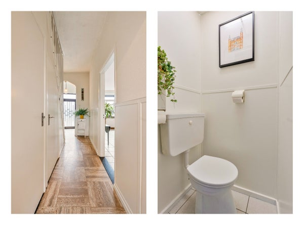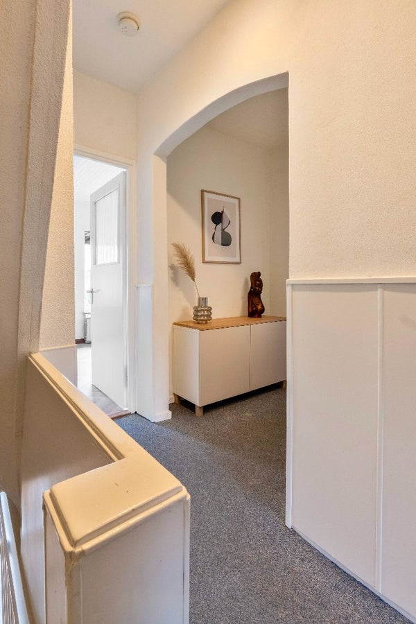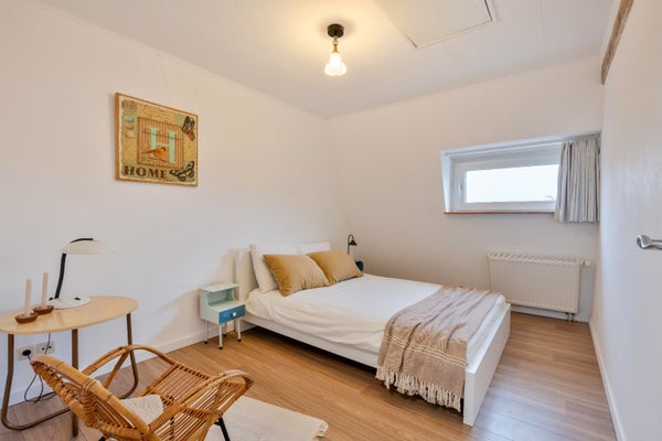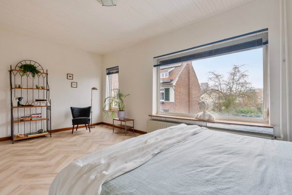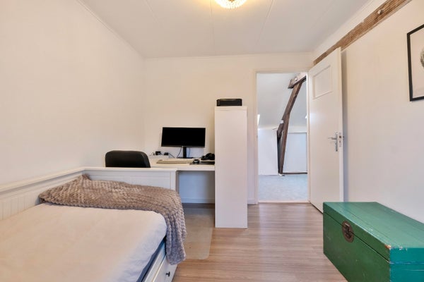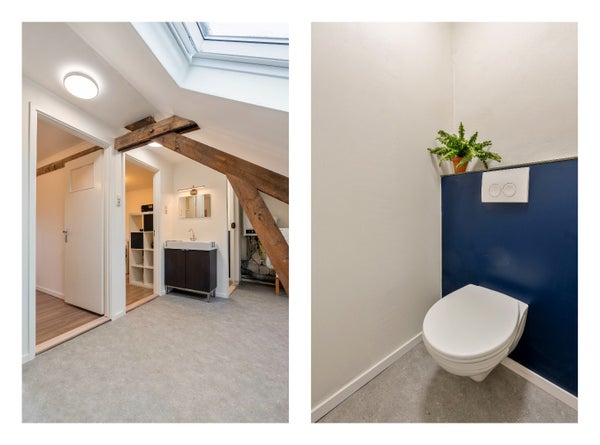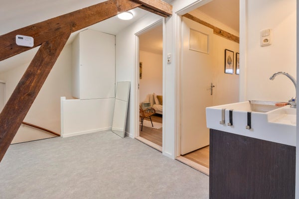 Via een vaste trap bereikt u de karakteristieke tweede verdieping, waar de authentieke houten dakspanten direct sfeer geven. Hier bevindt zich een overloop die slim is ingericht als pantry met wastafel en extra bergruimte. Tevens is hier de tweede witgoedaansluiting gesitueerd. Op deze verdieping zijn nog eens twee fijne slaapkamers aanwezig. Daarnaast is er een separate afgesloten ruimte met een derde (hangend) toilet. Dit maakt de etage perfect als zelfstandig domein voor een tiener of voor logees.