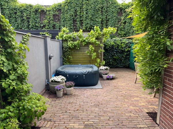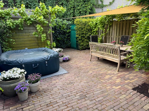 - De tuin is een oase van rust, met een vrije achterom en ligging zonder achterburen. Zo geniet je van optimale privacy in een beschutte, groene buitenruimte: een rustige binnentuin aan de rand van het centrum!