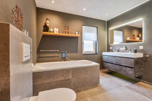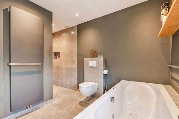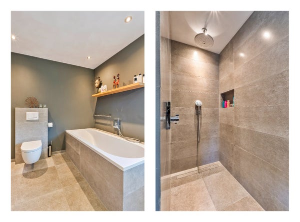 - De luxe badkamer (ca.9m2) is een ware privé-wellness: vloerverwarming, royale inloopdouche, ligbad met bubbelbadfunctie en een dubbele wastafel met stijlvol meubel. Comfort, ruimte en ontspanning komen hier perfect samen.