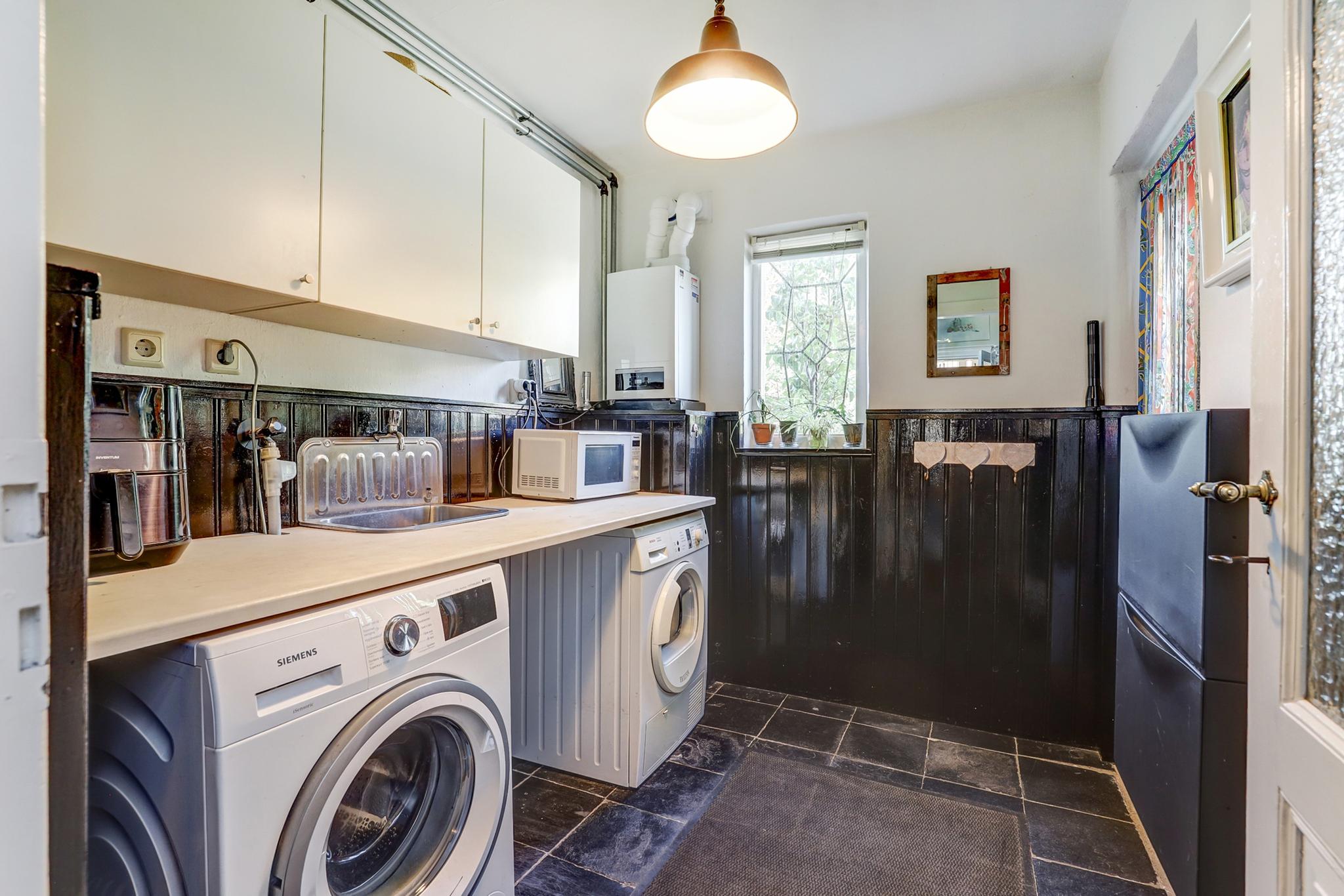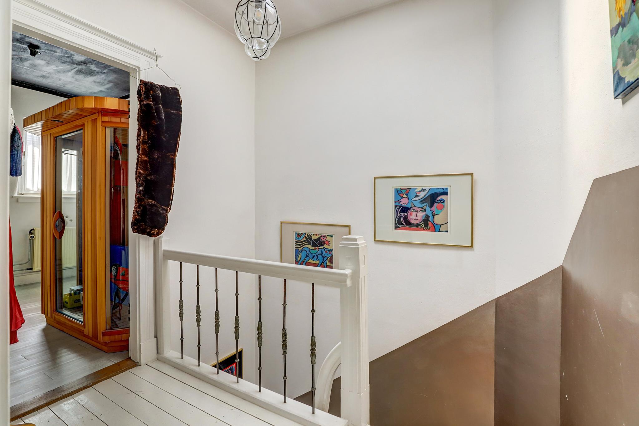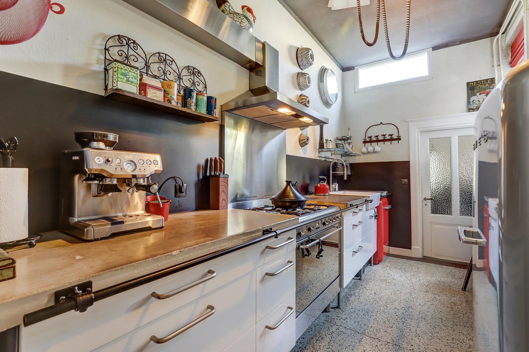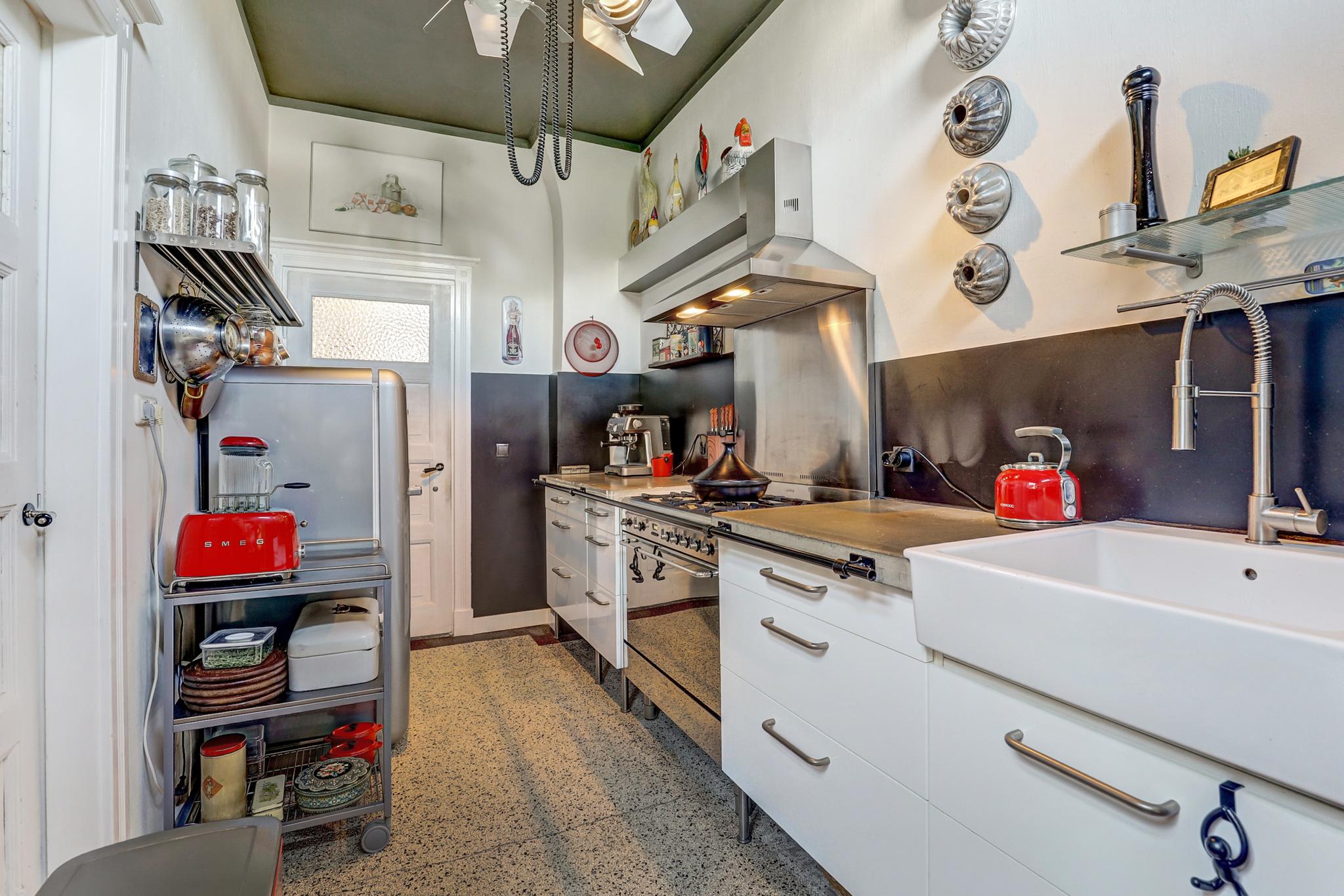 Deze ruime woning uit 1930 heeft een woonoppervlakte van 173 m² en een inhoud van 708 m³, gelegen op een perceel van 180 m². De karakteristieke sfeer valt meteen op bij binnenkomst via de hal met terrazzo vloer en authentiek trappenhuis. De ensuite woonkamer met eiken vloer en openslaande deuren naar de gezellige, ommuurde tuin is het hart van het huis. De gesloten keuken is uitgerust met moderne apparatuur en een betonnen aanrechtblad en er is een praktische bijkeuken aanwezig.