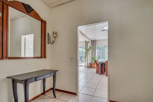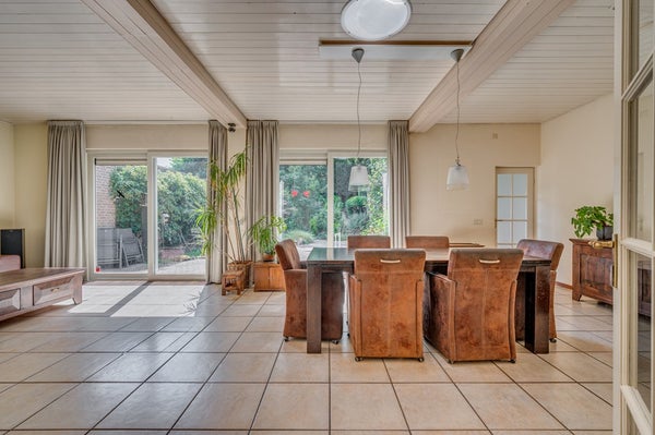 De ruime garage met elektrische sectionaalpoort maakt het geheel compleet.