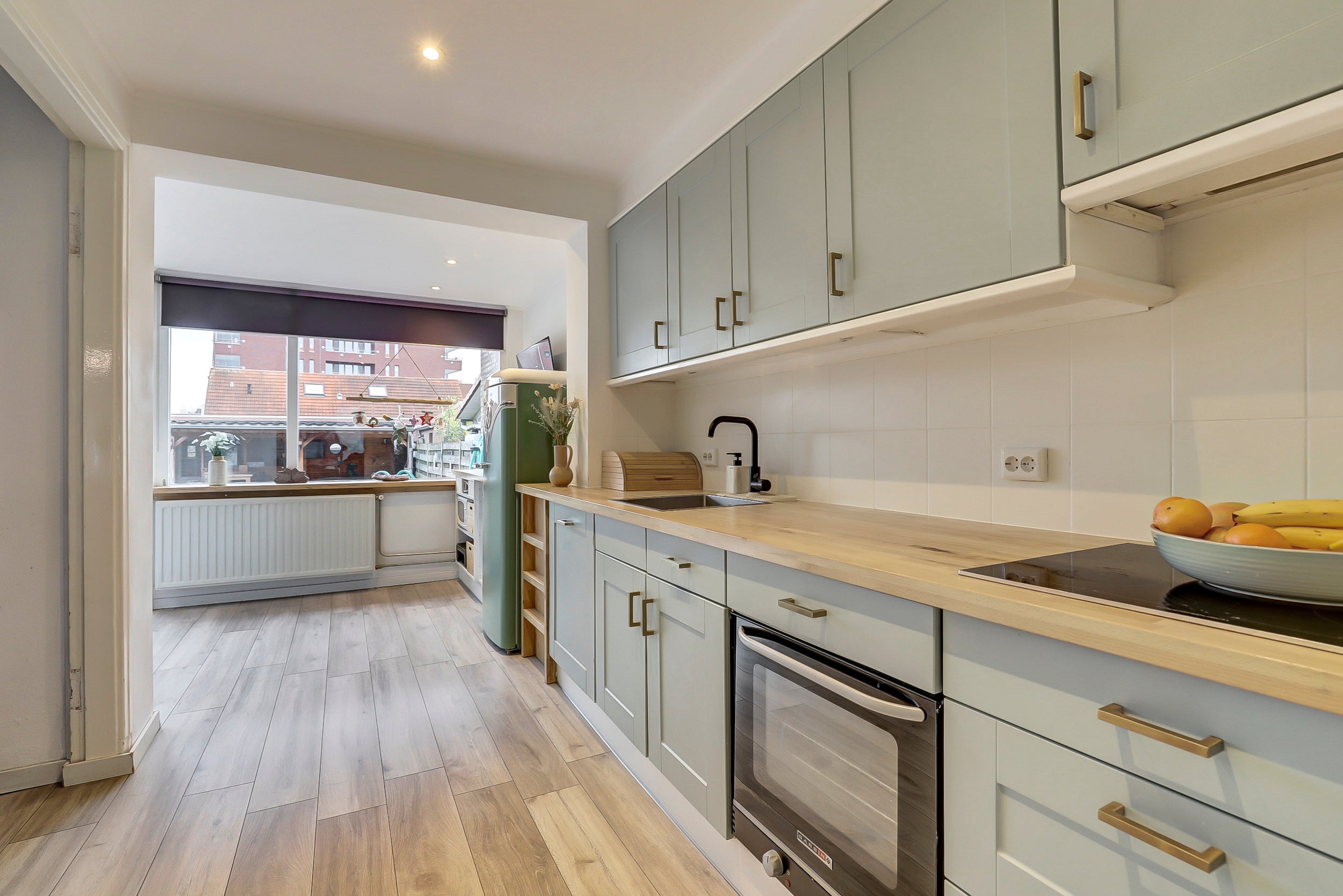 Deze charmante tussenwoning in de stijl van de jaren '30, gelegen in Venlo-Blerick, biedt 114 m² woonoppervlakte en een perceel van 213 m². Op loopafstand vindt u het gezellige Lambertusplein, winkels en scholen. De woning heeft 6 kamers, waaronder 3 slaapkamers van ca. 16, 16 en 6 m². De woonkamer en keuken zijn voorzien van een eigentijdse laminaatvloer, en de keuken heeft inbouwapparatuur zoals een inductiekookplaat, oven en vaatwasser. De diepe achtertuin ligt op het zuiden en heeft een gezellige overkapping. Verder is er een provisiekelder en een ruime zolder die eenvoudig kan worden afgewerkt voor extra kamers. Met authentieke details en vergrotingsmogelijkheden is dit een ideale plek voor gezinnen.