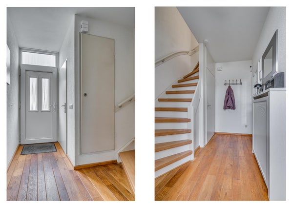 Met een totale woonoppervlakte van 116 m² en een perceel van 223 m² beschikt het huis over praktische voorzieningen. De begane grond heeft een eiken vloer, een praktische trapkast, en de slaapkamers zijn voorzien van laminaat. Voorzieningen zoals winkels, scholen, natuurgebieden en autosnelwegen zijn nabij.