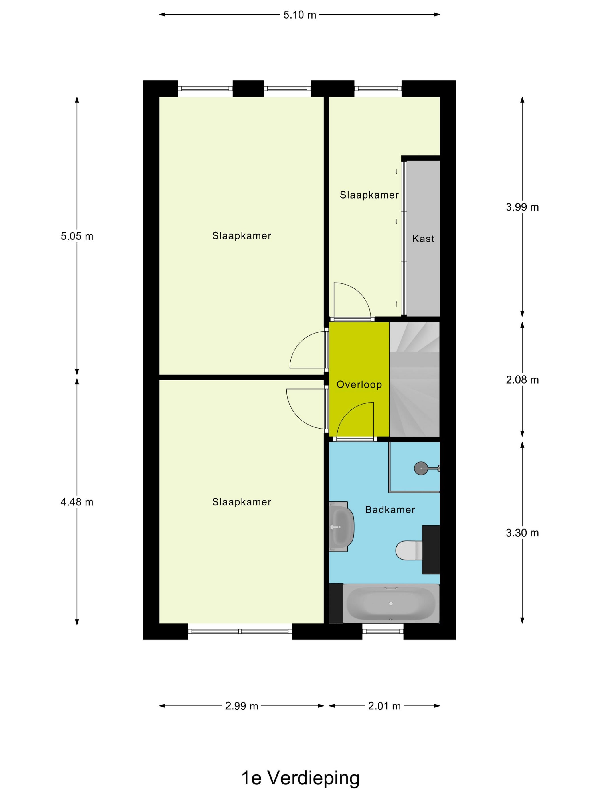 - De tussenwoning heeft een woonoppervlakte van 135 m² en beschikt over 6 kamers, waarvan 5 slaapkamers;