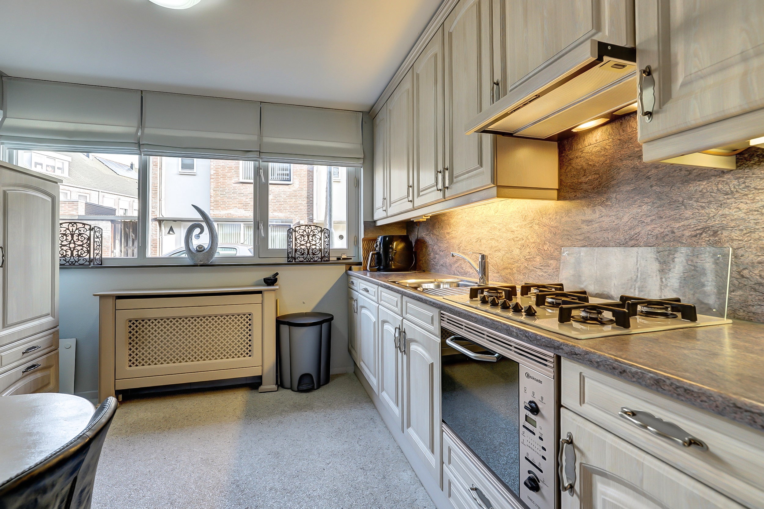 Deze uitstekend onderhouden woning met een woonoppervlakte van 135 m² en een inhoud van 486 m³, gelegen op een perceel van 113 m², is gebouwd in 2000. De woning heeft 6 kamers, waaronder vijf slaapkamers. Op de begane grond zorgt vloerverwarming in combinatie met een grindvloer voor comfort. De lichte woonkamer heeft een open verbinding met de zonnige tuin en een modernere aluminium schuifpui. De keuken aan de voorzijde is uitgerust met moderne apparatuur, zoals een vaatwasser en gasfornuis. De eerste verdieping bevat drie slaapkamers en een badkamer, stijlvol afgewerkt in Tadelakt. De tweede verdieping biedt nog twee slaapkamers en extra bergruimte. Met een garage en extra parkeerplek, zonnepanelen en airco, is dit een energiezuinig en comfortabel huis.