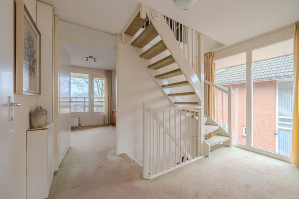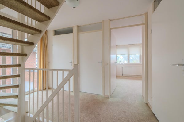 De overloop biedt toegang tot alle vertrekken en de vaste trap naar de zolderverdieping.