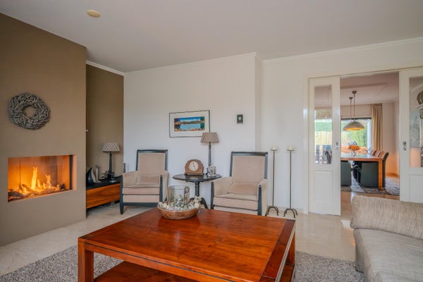 Op de begane grond bevindt zich een royale woonkamer met sfeervolle gashaard en en-suite deuren.