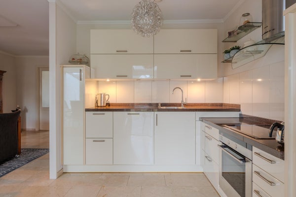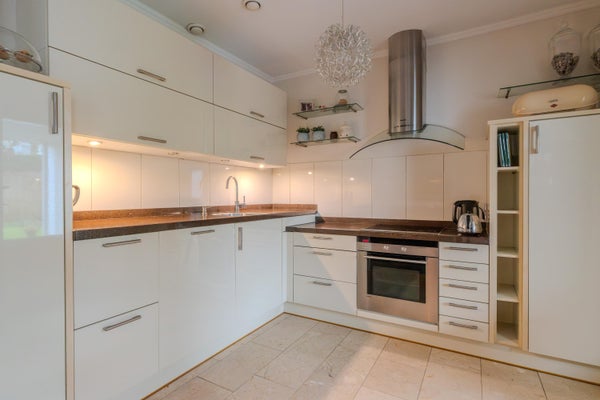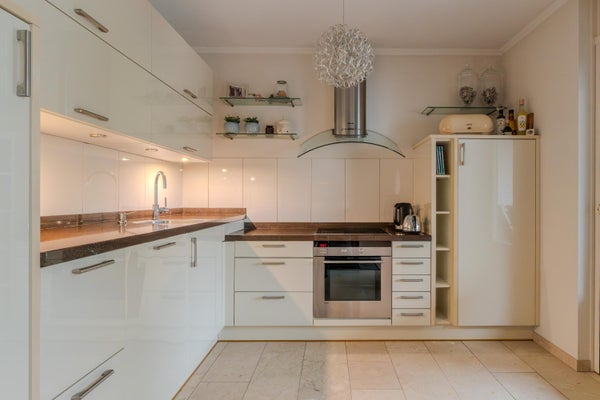 Vanuit de keuken is er directe toegang tot de overkapping en de tuin, evenals tot de garage.