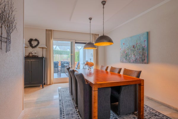 Vanuit deze ruimte heeft u toegang tot het overdekte terras en de achtertuin.