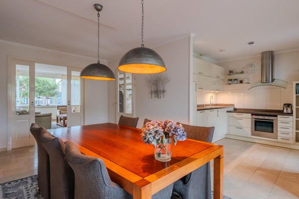 Aansluitend bevindt zich de eetkamer met open keuken.
