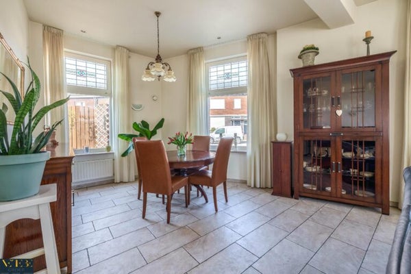 Deze ruime hoekwoning ligt op steenworp afstand van het centrum van Blerick. Je komt binnen in een lichte woonkamer van ongeveer 50 m², waar natuurlijke lichtinval door de vele ramen zorgt voor een prettige sfeer. De grote dichte keuken van circa 13 m² is voorzien van een eiland en heeft een 4-pits gaskookplaat, koelkast, oven, vaatwasser, en biedt toegang tot de bijkeuken. Op de eerste verdieping bevinden zich drie slaapkamers van 7 m², 12,5 m² en 23 m², evenals een grote badkamer met douche en wastafel. De woning heeft een bergvliering voor extra bergruimte. De achtertuin is volledig omheind en heeft een brede poort. Met vloerverwarming op de begane grond en een goede ligging nabij het centrum en uitvalswegen is deze woning perfect voor gezinnen.