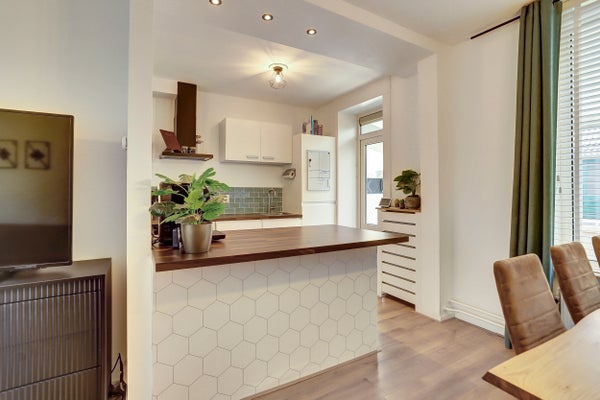 - De tussenwoning heeft een woonoppervlakte van 95 m² en beschikt over 6 kamers, waarvan 3 slaapkamers;