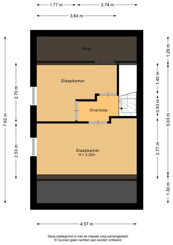 • De tussenwoning heeft een woonoppervlakte van 75 m² en beschikt over 3 kamers, waarvan 2 slaapkamers;