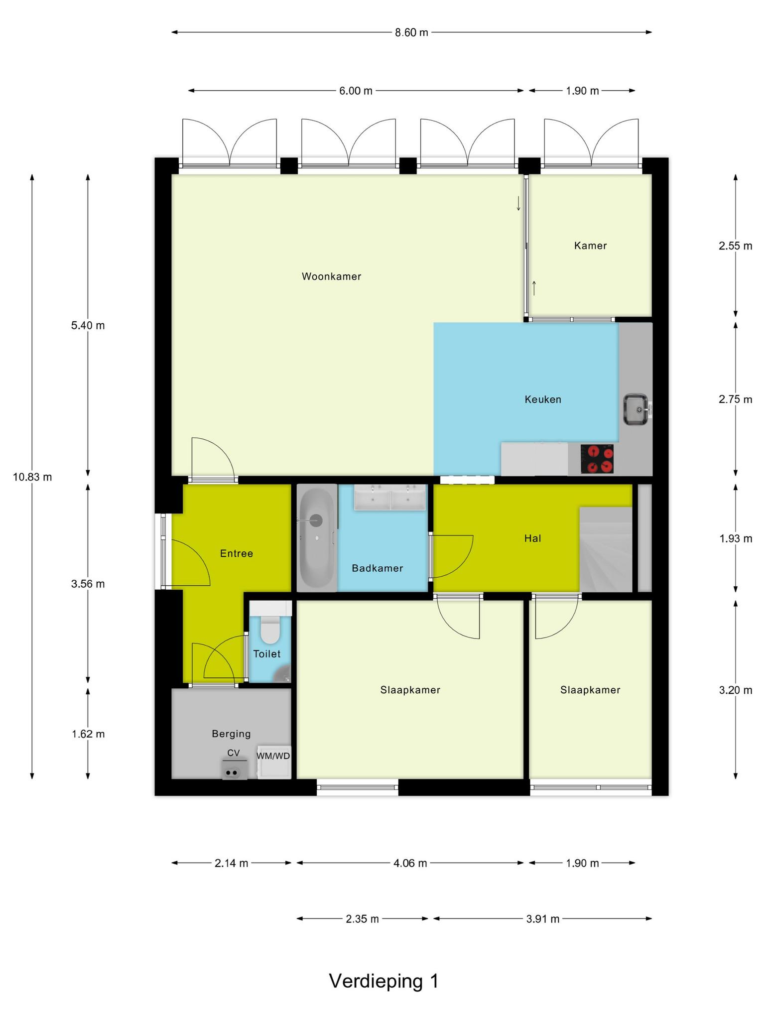 - De tussenwoning heeft een woonoppervlakte van 117 m² en beschikt over 4 kamers, waarvan 2 slaapkamers;