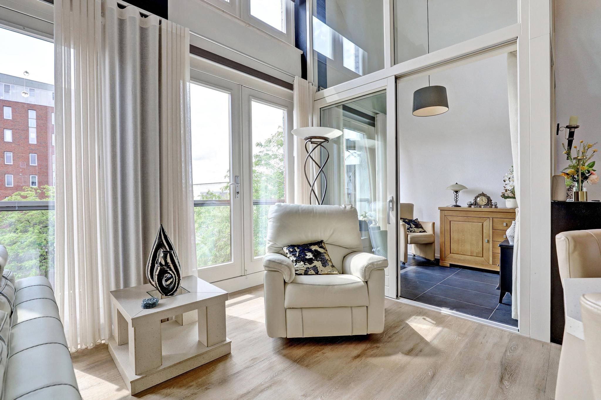 In het hart van Blerick ligt dit luxe penthouse van 121 m², gebouwd in 2013. Met vier kamers, waaronder twee slaapkamers, biedt het een royale vide en een leefruimte van circa 41 m² met een indrukwekkende plafondhoogte van 5 meter. De grote ramen zorgen voor veel licht en een prachtig uitzicht over de Carleysplaats. De moderne open keuken is uitgerust met hoogwaardige apparaten, waaronder een inductiekookplaat en vaatwasser. De volledig betegelde badkamer heeft een ligbad en dubbele wastafel. Daarnaast beschikt het penthouse over een technische ruimte van 6 m². Het souterrain biedt extra bergruimte van 12,5 m². Parkeren is gemakkelijk in de blauwe zone rondom. Winkels en voorzieningen zijn op loopafstand, en het centrum van Venlo is slechts 5 tot 10 minuten fietsen.
