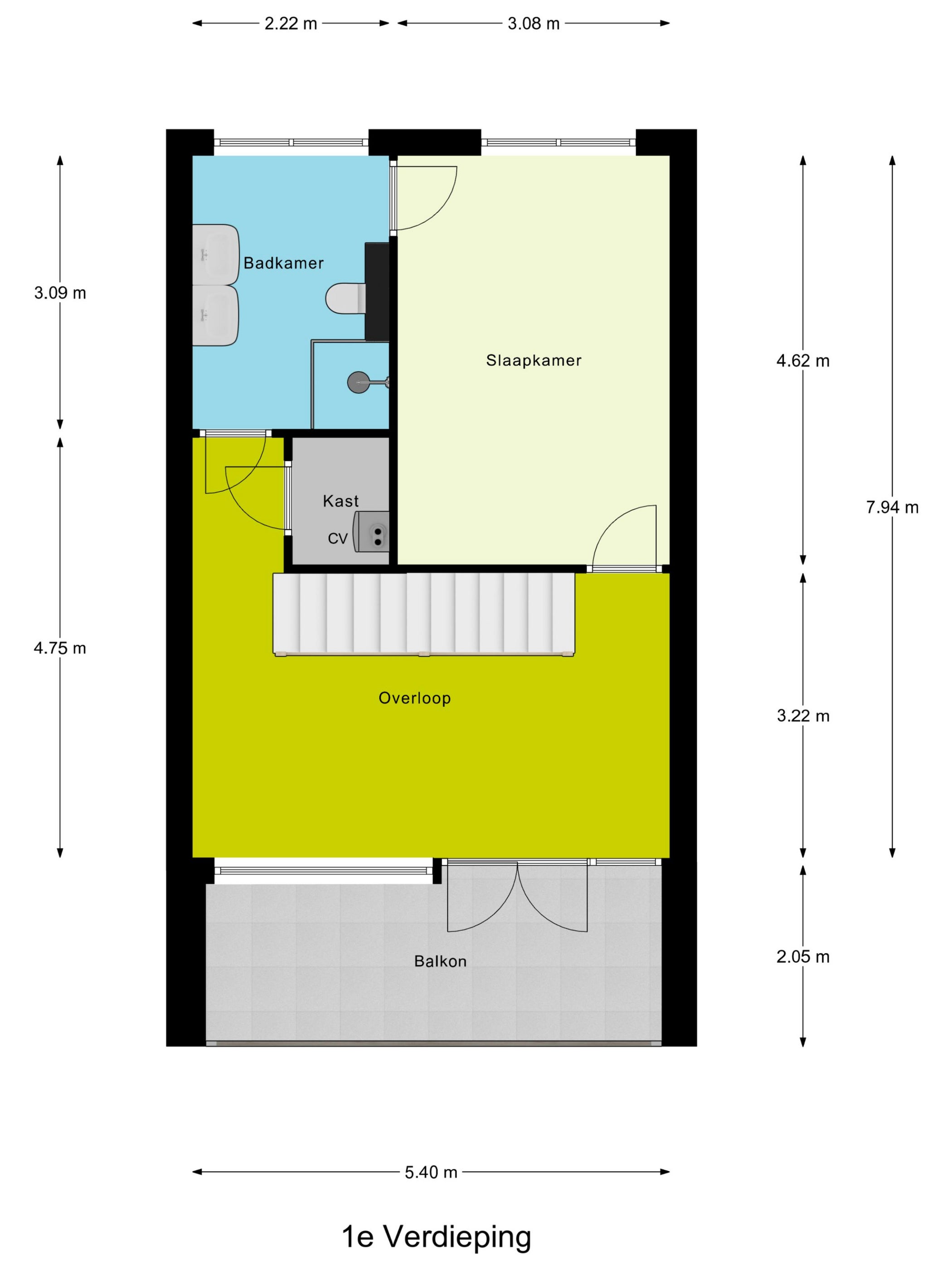 - De tussenwoning heeft een woonoppervlakte van 128 m² en beschikt over 4 kamers, waarvan 3 slaapkamers;