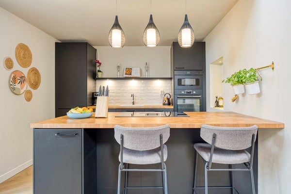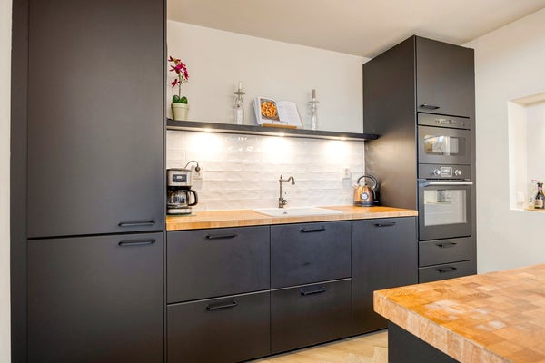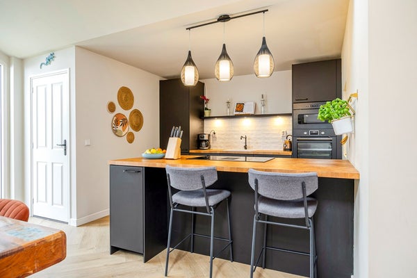 De open keuken is uitgerust met een moderne inbouwkeuken en diverse hoogwaardige inbouwapparatuur – perfect voor kookliefhebbers.