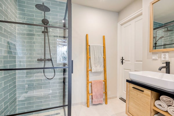 Daarnaast bevindt zich hier een tweede functionele badkamer met douche, toilet en vaste wastafel.