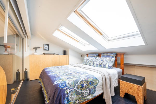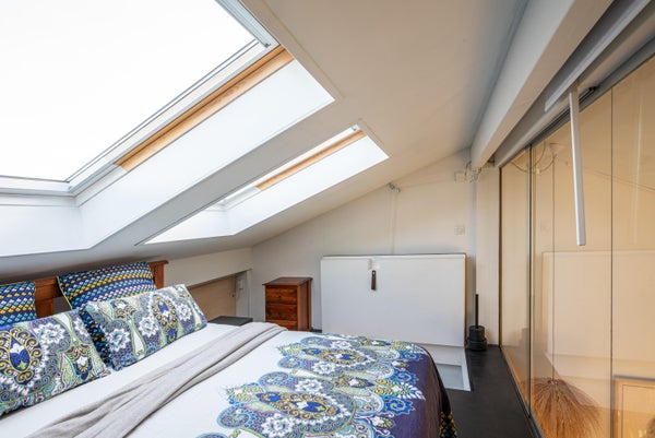 Via een vaste trap kom je op zolder/entresol, nu in gebruik als slaapkamer met 2 velux dakramen.