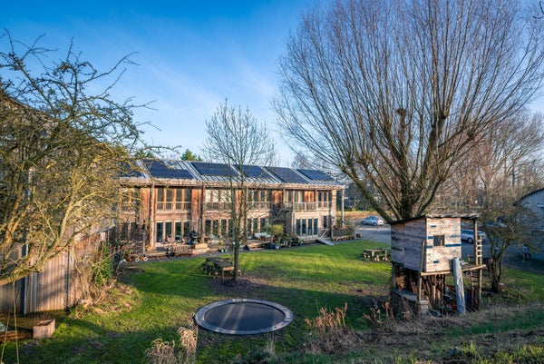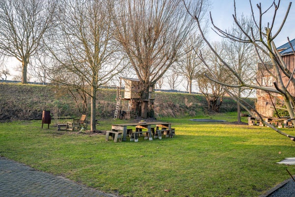 The communal garden is a true highlight, accessible from your terrace. Spacious and sheltered, it is ideal for relaxed outdoor living. Children can enjoy the treehouse, swings, and trampoline, while you unwind in one of the cozy seating areas. Designed to offer both togetherness and seclusion, the garden is a place where neighbors respectfully value each other’s privacy, allowing everyone to enjoy the space in their own way. In the evening, gather around the fire pit and enjoy a warm campfire. This is the perfect spot to enjoy life outdoors. Together or in peaceful privacy.
