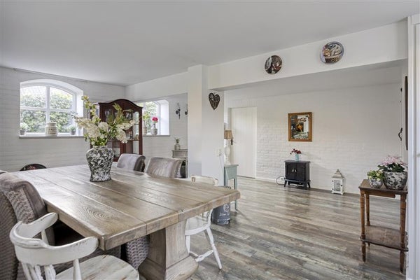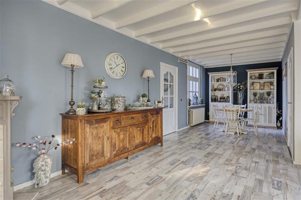 Stel je eens voor: je opent de voordeur van deze sfeervolle halfvrijstaande woonboerderij, en direct valt op hoe ruim en licht het hier is. De prachtige hoge plafonds, grote raampartijen en het gebruik van natuurlijke materialen stralen warmte en karakter uit. Dit is geen standaard woning, dit is een plek waar je echt thuiskomt.
