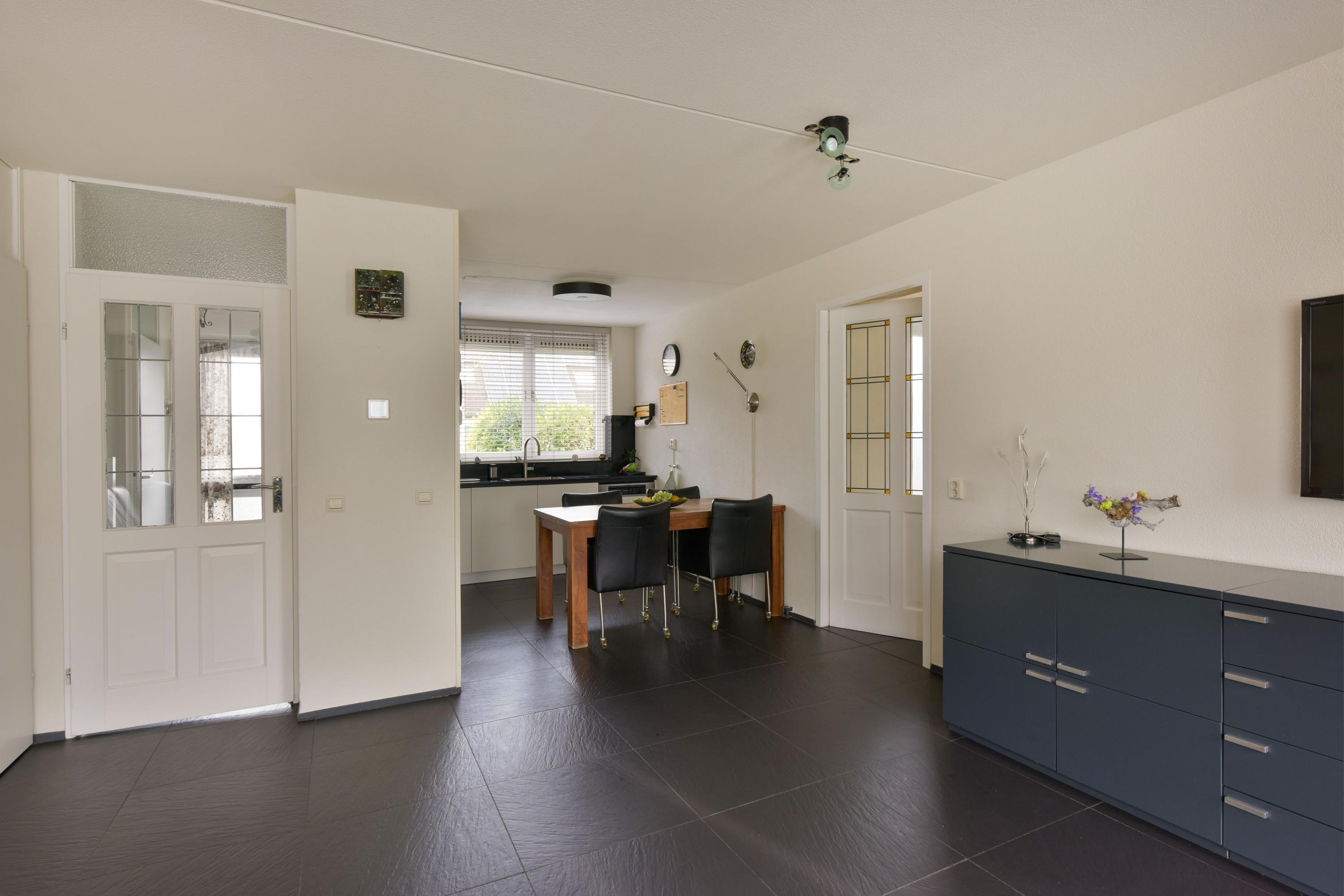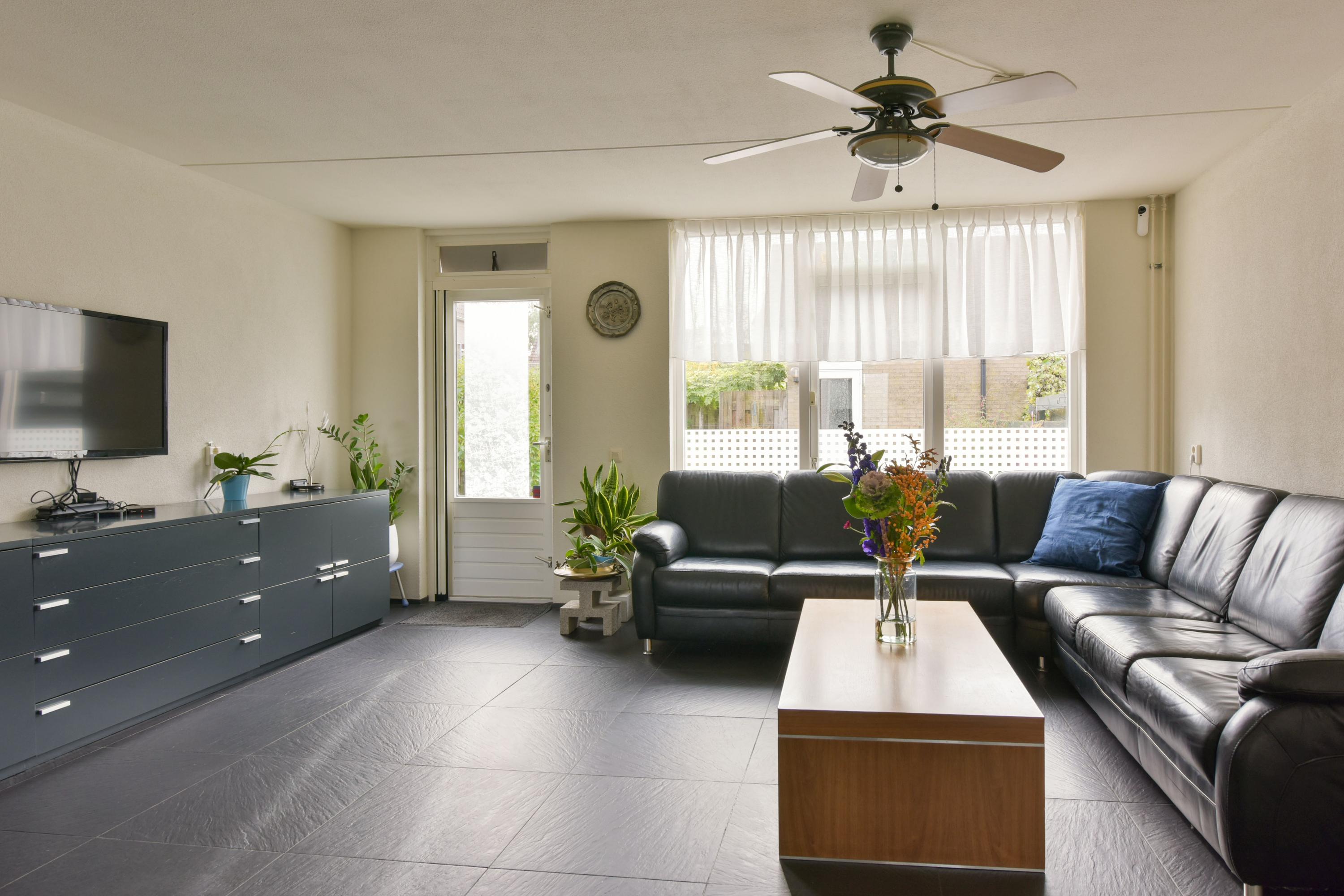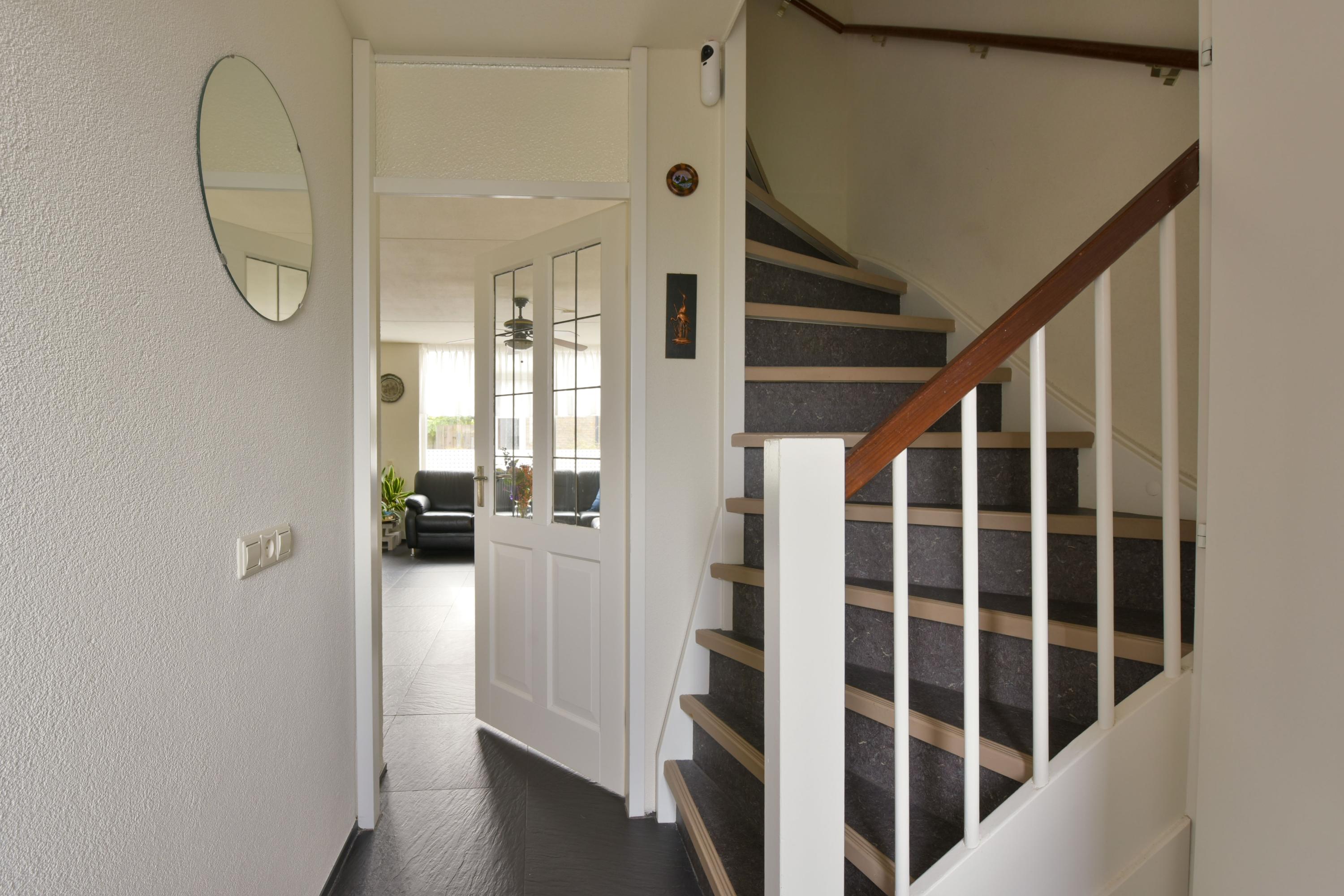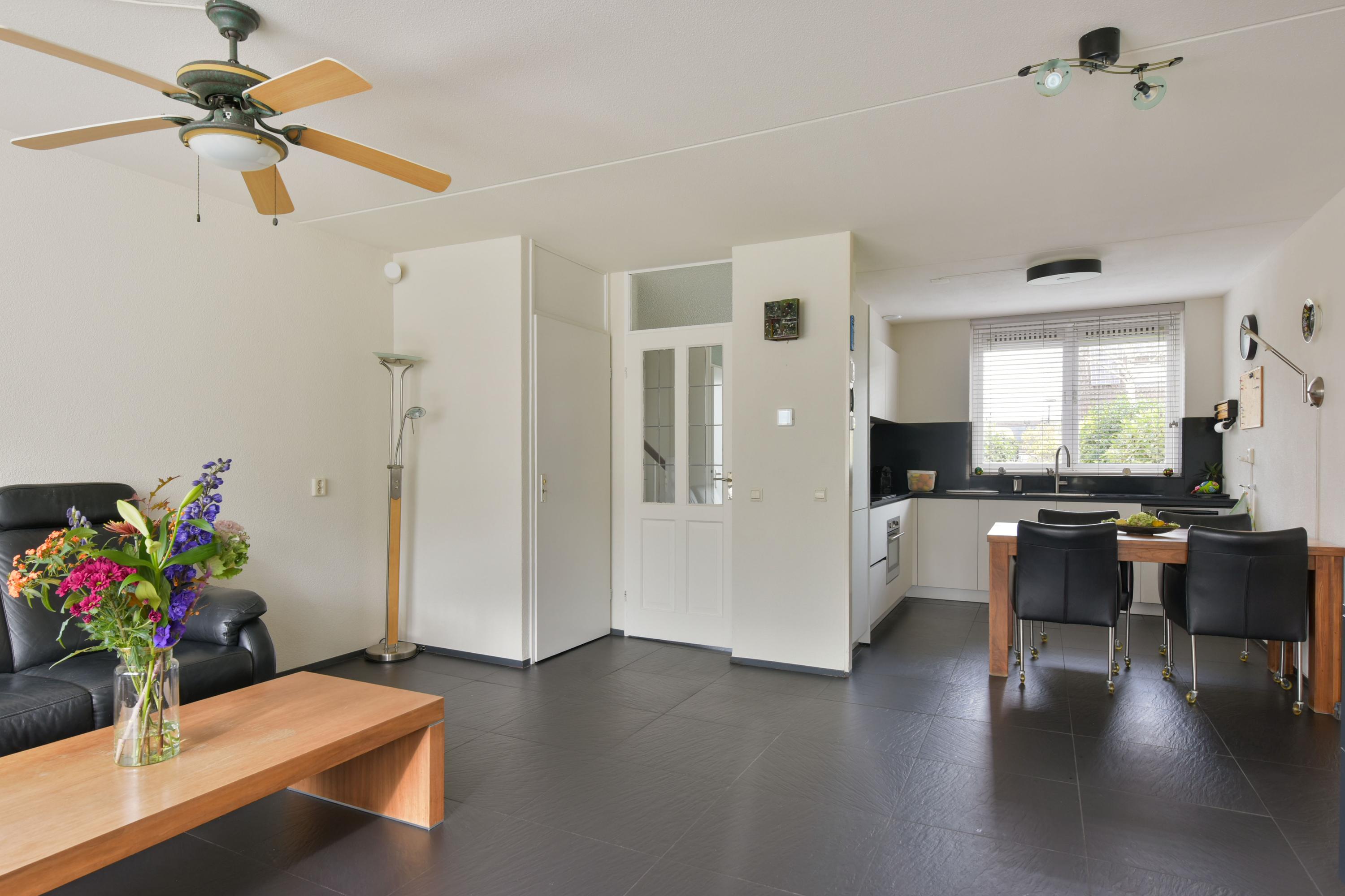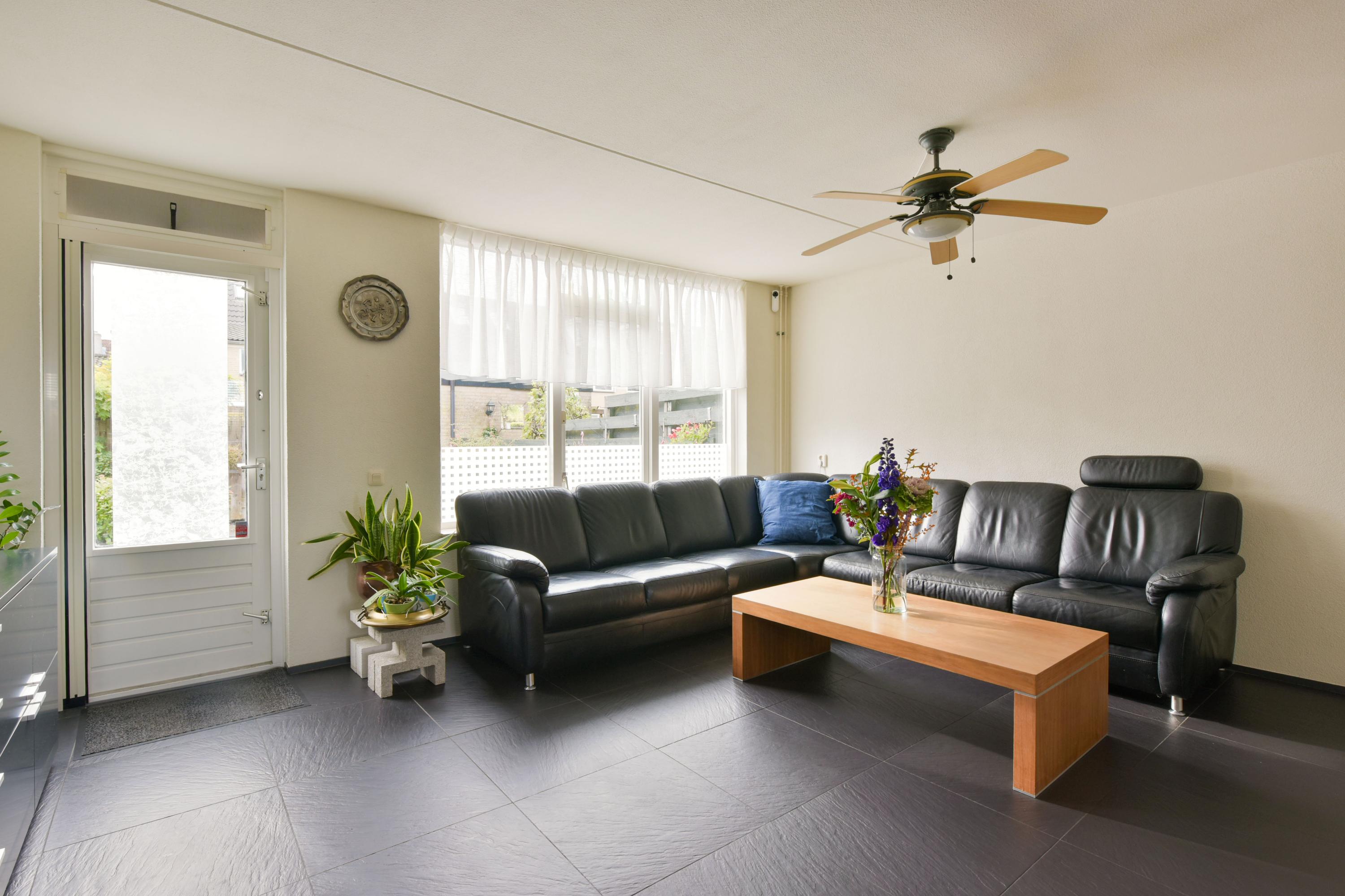 De begane grond heeft een lichte woonkamer met grote ramen en een L-vormige keuken met moderne inbouwapparatuur. Via de zithoek zijn er deuren naar de zonnige achtertuin, waar ook het kantoor toegankelijk is. De eerste verdieping bevat drie ruime slaapkamers en een complete badkamer. De tweede verdieping heeft een vierde slaapkamer en een voorzolder met wasmachine-aansluitingen. De zuidelijk gelegen achtertuin is onderhoudsvriendelijk en voorzien van een stenen berging.