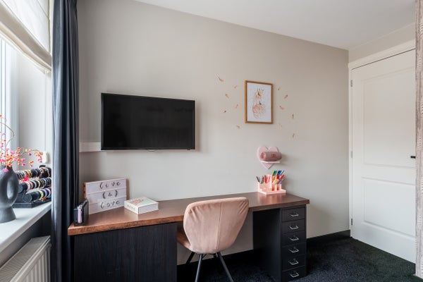 - De tussenwoning heeft een woonoppervlakte van 128 m² en beschikt over 5 kamers, waarvan 4 slaapkamers;