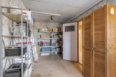 De achtertuin op het noordoosten, van 34 m², is verzorgd en beschikt over een vrijstaande houten berging van 4 m². De ligging van de woning biedt het gemak van permanent wonen, en de buitenzijde verkeert in goede onderhoudsstaat.