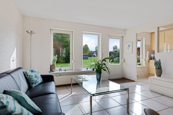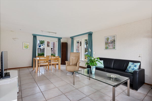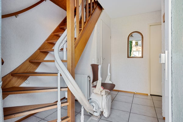 De woning heeft een royale tuin met uitzicht over een weiland en een vrijstaande sauna voor ontspanning. Een aangebouwde stenen garage met een elektrische roldeur biedt ruimte voor een auto. De locatie in een rustige woonwijk zorgt voor een goede bereikbaarheid van scholen en natuurgebieden, terwijl het als een actieve gemeenschap bekendstaat die ouderen ondersteunt. Met zonnepanelen en goede isolatie valt het met energielabel B ook onder duurzame woningen.