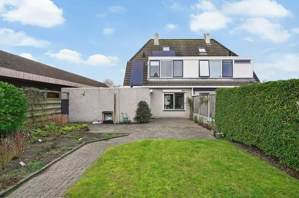De indeling op de begane grond omvat een lichte woonkamer met gashaard, een moderne open keuken (2022) en een bijkeuken. De eerste verdieping herbergt drie ruime slaapkamers en een nette badkamer. De tweede verdieping biedt nog een vierde slaapkamer. De achtertuin van 140 m² is oost/zuidoost gericht en ideaal voor zonliefhebbers. Oprit voor twee auto’s maakt het geheel compleet.