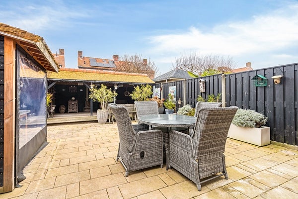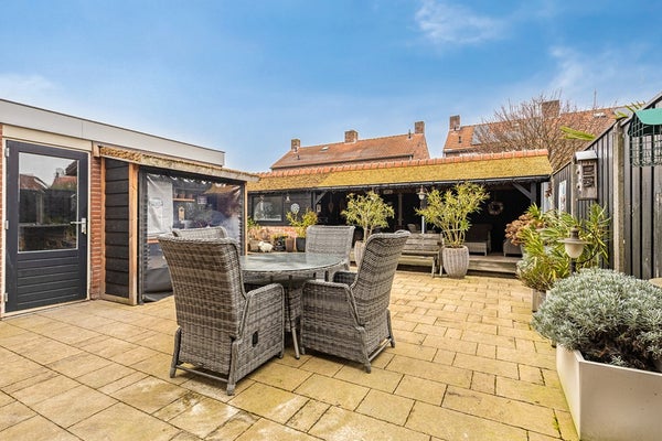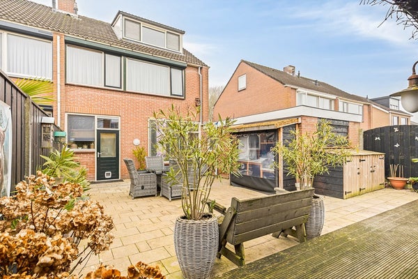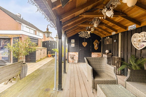 Buiten wordt het pas echt interessant. De keurig onderhouden tuin met luxe overkapping voorzien van elektra is een verlengstuk van de woning. Hier geniet je elk seizoen van het buitenleven, met volop mogelijkheden voor een loungehoek of buitenkeuken. De aangebouwde berging, toegang tot de garage met werkplaats en parkeerruimte voor twee auto's op eigen terrein maken het plaatje compleet.