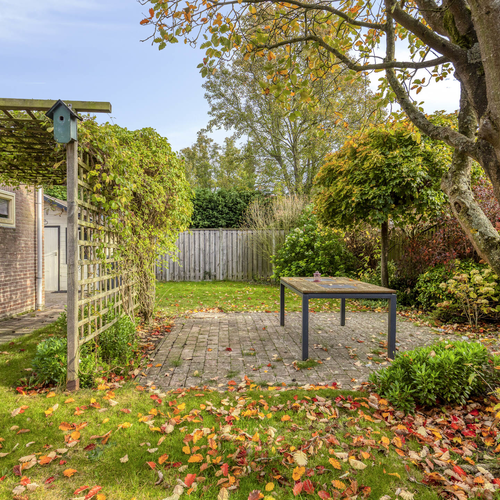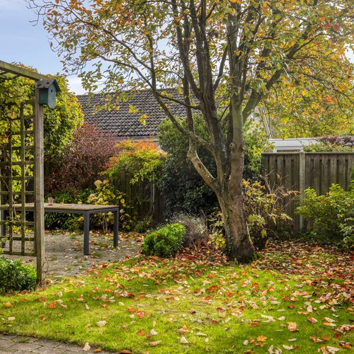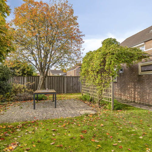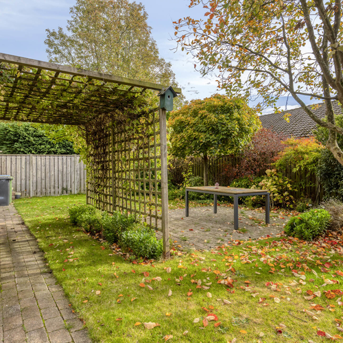 De achtertuin is een groene oase met terras en tuinhuis voor opslag. Kortom, een complete gezinswoning in een rustige omgeving.