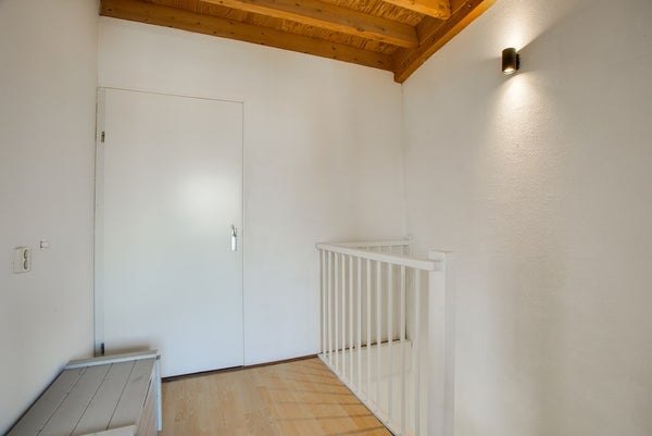 2e verdieping: ruime, speelse en hoge zolderverdieping onder het ronde dak met 2 royale slaapkamers (1 aan voorzijde en 1 aan achterzijde). Separate technische ruimte met een opstelplaats voor de CV ketel (Remeha Tzerra uit 2016) en aansluitingen voor de wasmachine en droger.