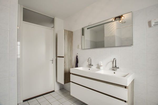 1e Verdieping: overloop, 3 ruime slaapkamers (2 aan achterzijde en 1 aan voorzijde), licht betegelde badkamer met bad, douche, dubbele wastafel en 2e toilet.