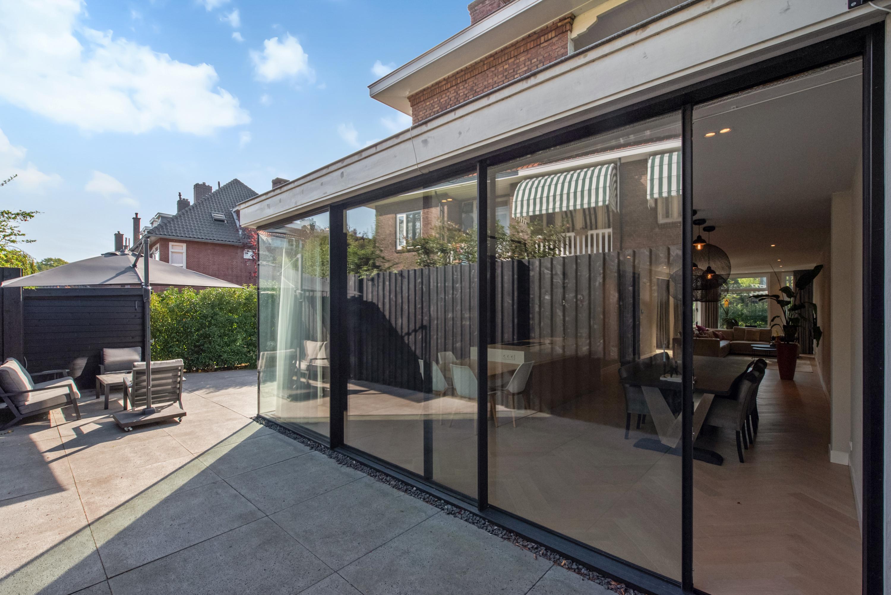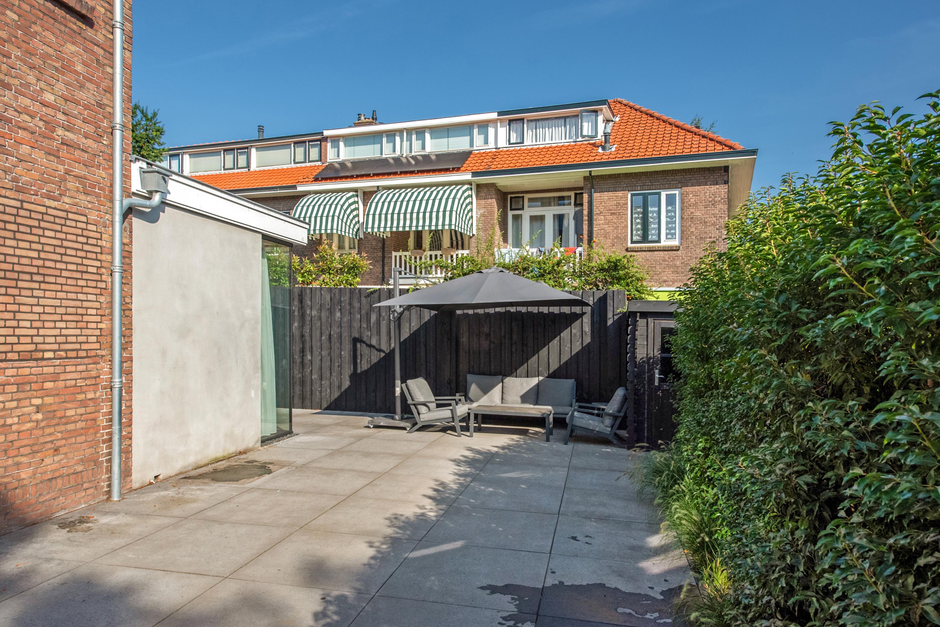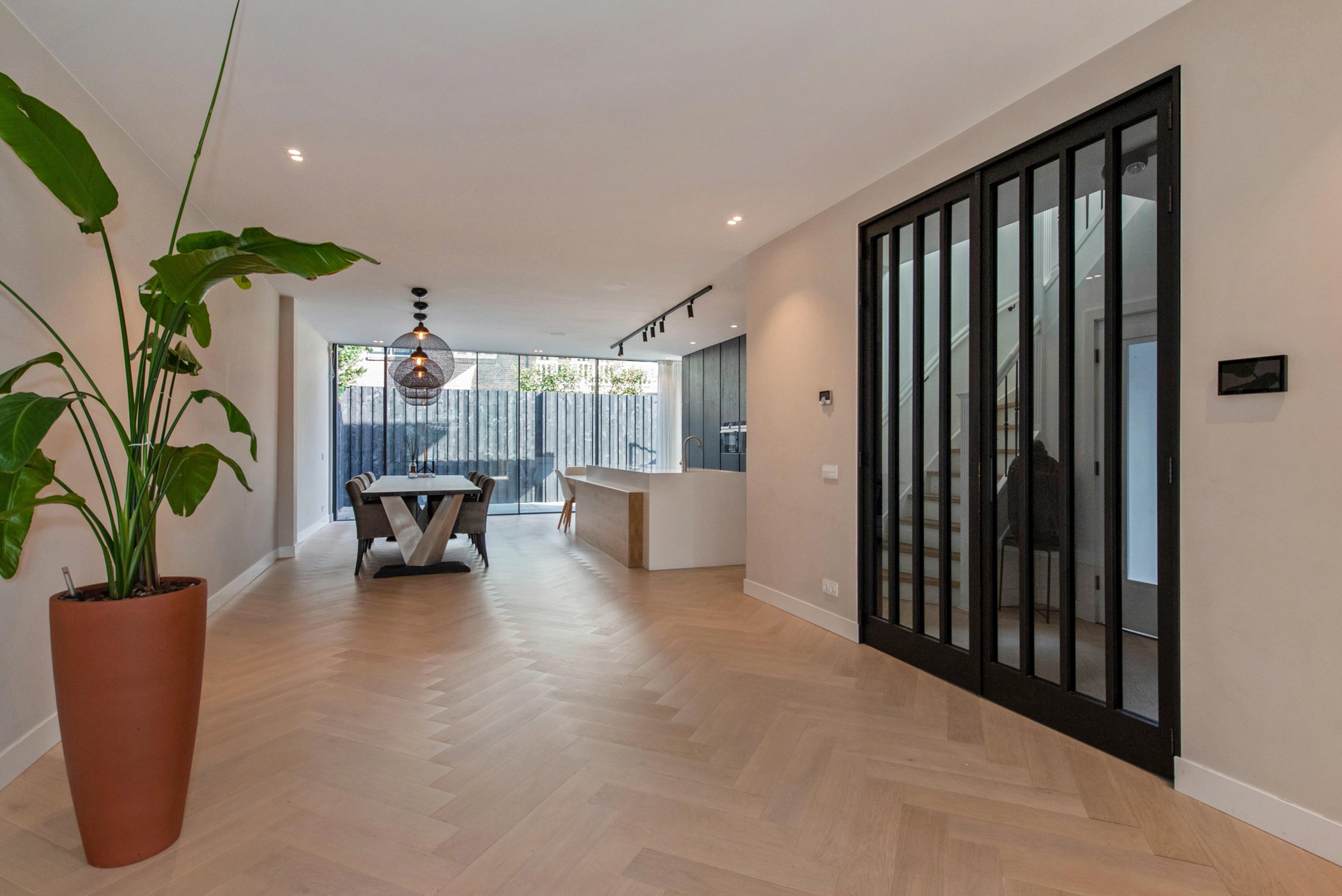 Dit luxe, uitgebouwde herenhuis van ca. 204 m² is volledig naar een state-of-the-art standaard gerenoveerd en beschikt over een royale tuin op een perceel van ca. 323 m². Bij binnenkomst in de hal vind je een garderobe en een apart toilet. De lichte, L-vormige woonkamer heeft grote glazen deuren die toegang bieden tot de verzorgde tuin. De moderne woonkeuken is uitgerust met hoogwaardige inbouwapparatuur en een groot kookeiland. Op de eerste verdieping zijn twee ruime slaapkamers, beide met airconditioning, en een luxe badkamer met inloopdouche en ligbad. De tweede verdieping herbergt een hoofdslaapkamer met eigen badkamer. Gelegen in Voorburg, nabij scholen en openbaar vervoer, dit huis is perfect voor gezinnen.