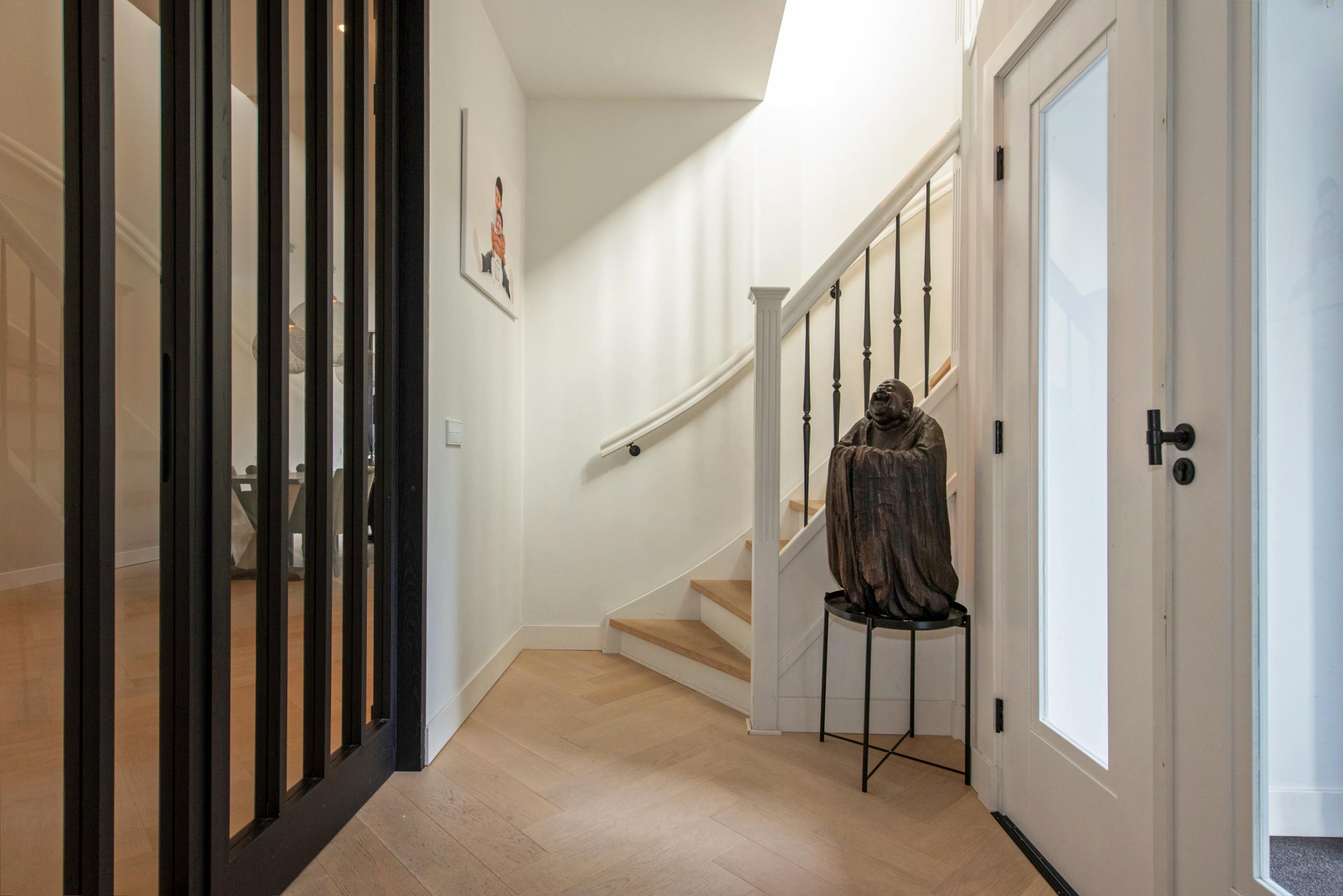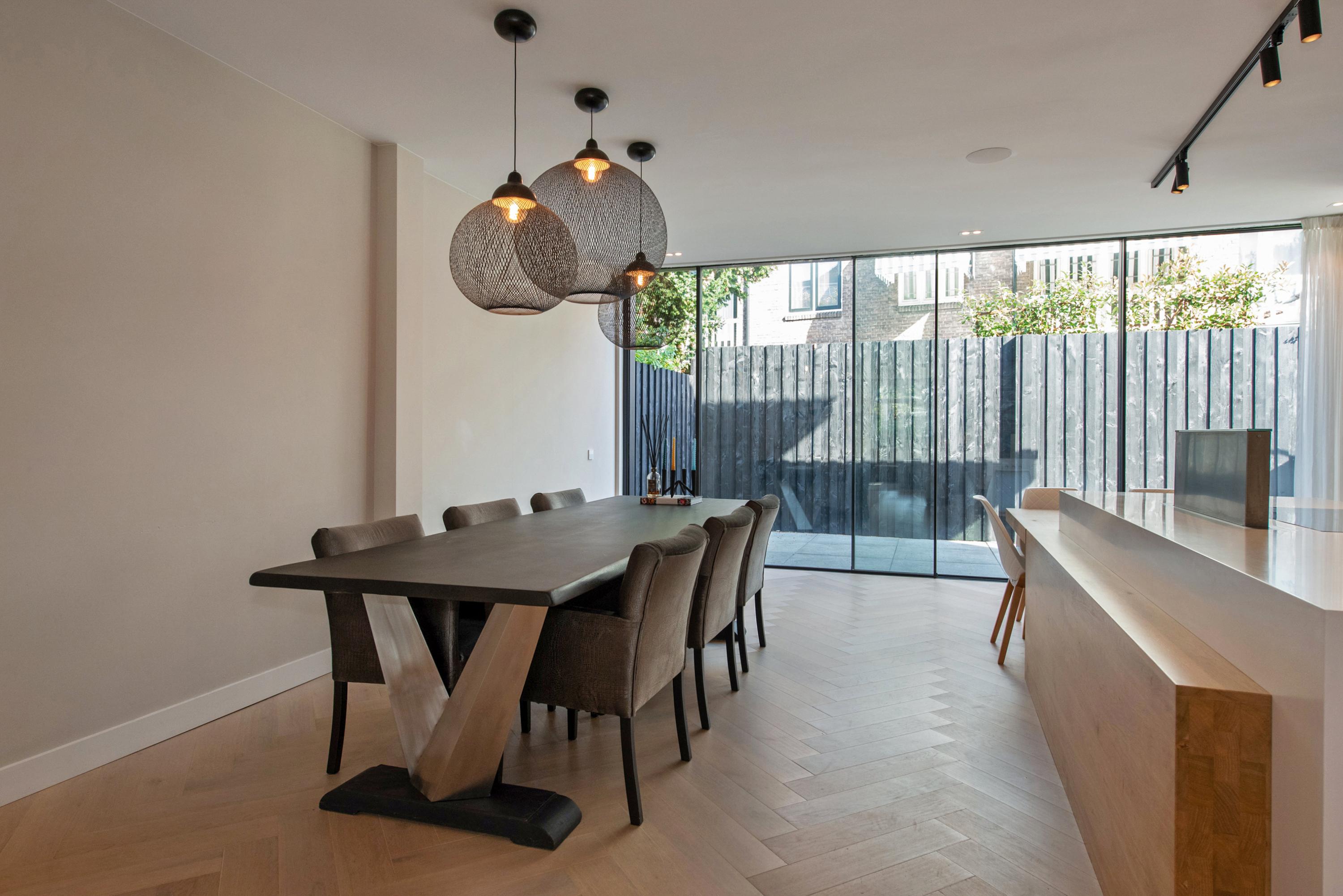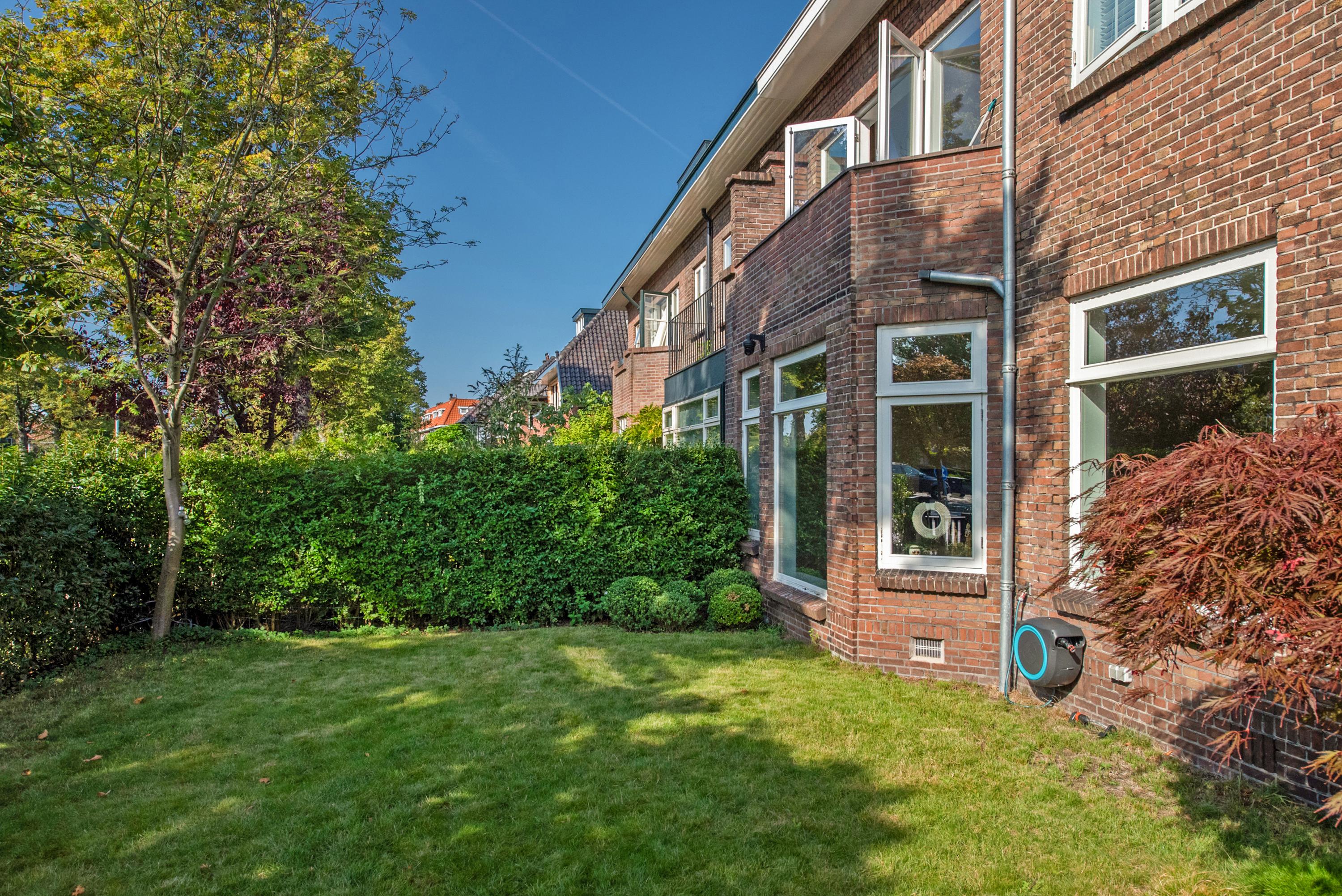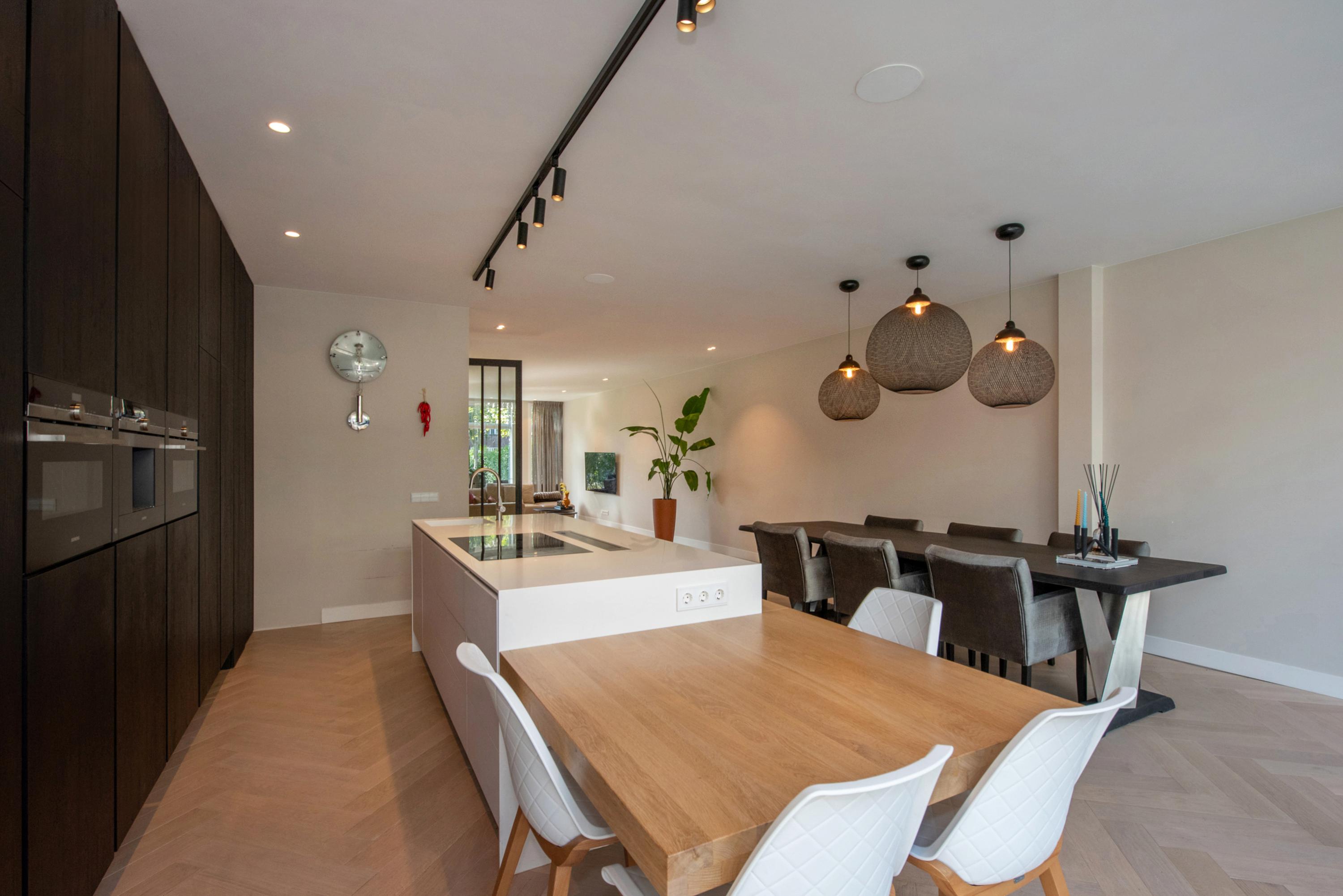 Dit luxe, uitgebouwde herenhuis van ca. 204 m² is volledig naar een state-of-the-art standaard gerenoveerd en beschikt over een royale tuin op een perceel van ca. 323 m². Bij binnenkomst in de hal vind je een garderobe en een apart toilet. De lichte, L-vormige woonkamer heeft grote glazen deuren die toegang bieden tot de verzorgde tuin. De moderne woonkeuken is uitgerust met hoogwaardige inbouwapparatuur en een groot kookeiland. Op de eerste verdieping zijn twee ruime slaapkamers, beide met airconditioning, en een luxe badkamer met inloopdouche en ligbad. De tweede verdieping herbergt een hoofdslaapkamer met eigen badkamer. Gelegen in Voorburg, nabij scholen en openbaar vervoer, dit huis is perfect voor gezinnen.