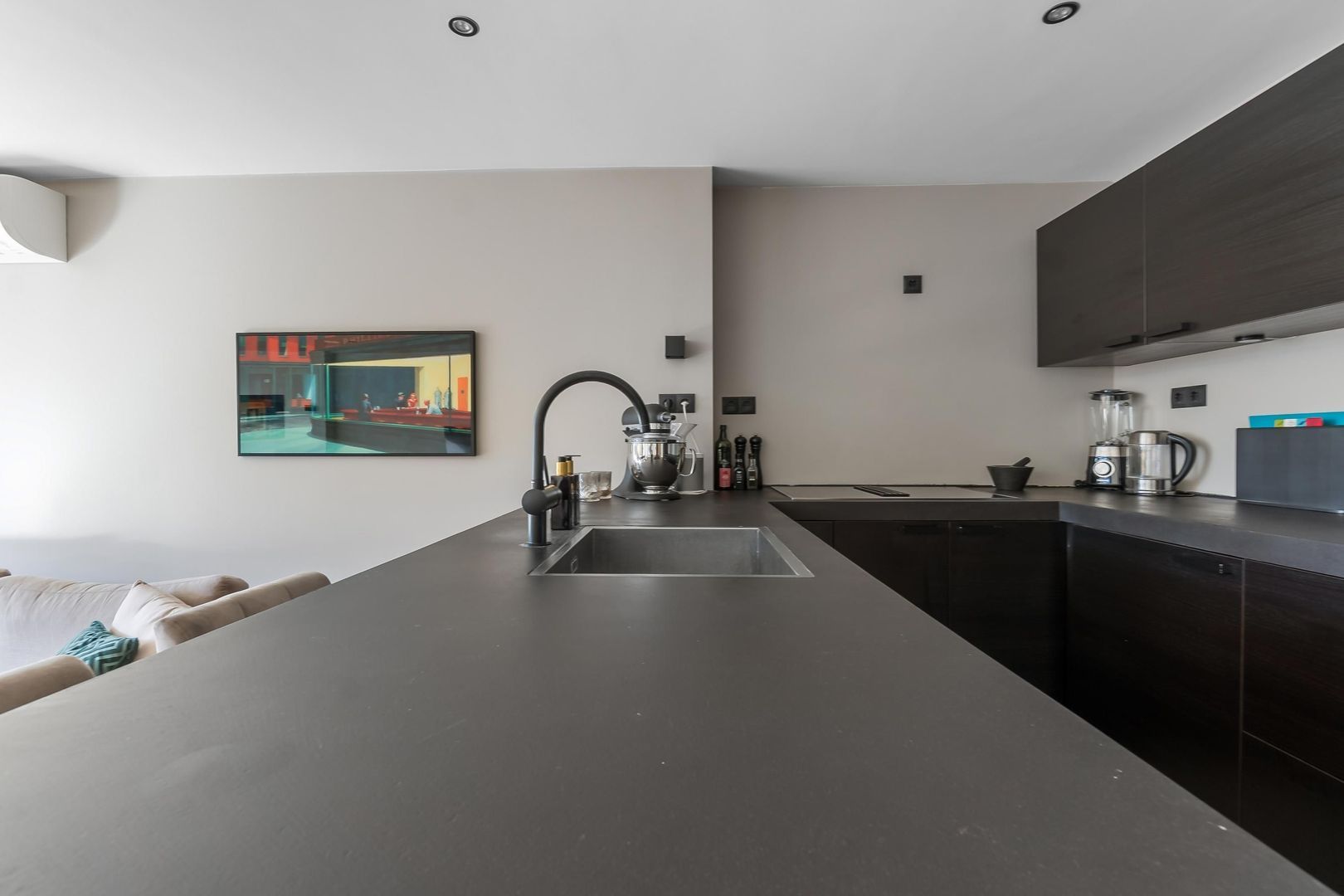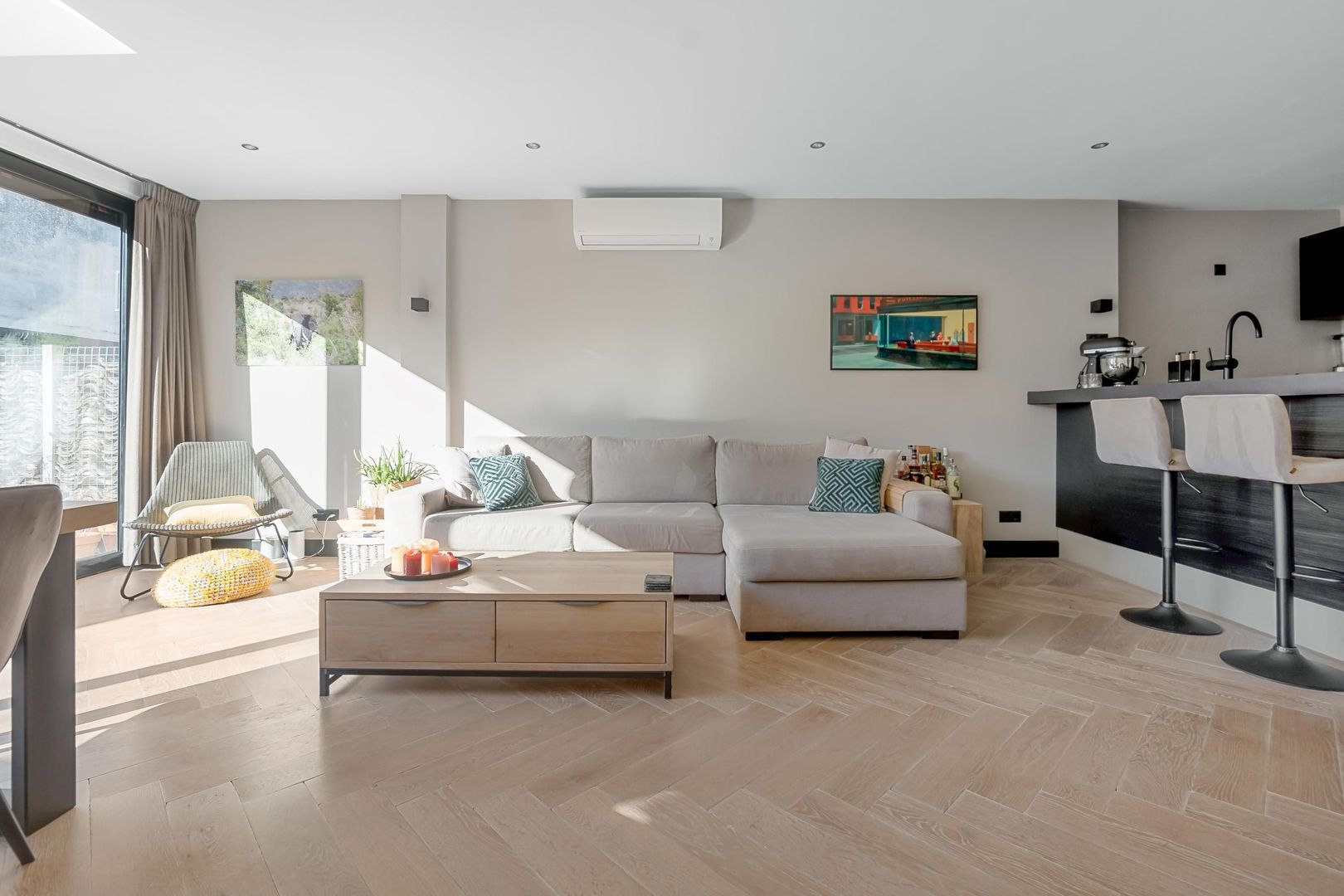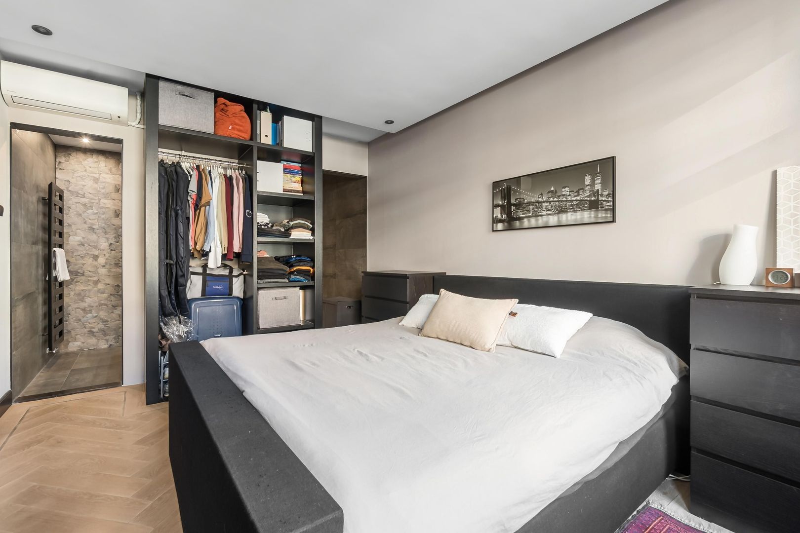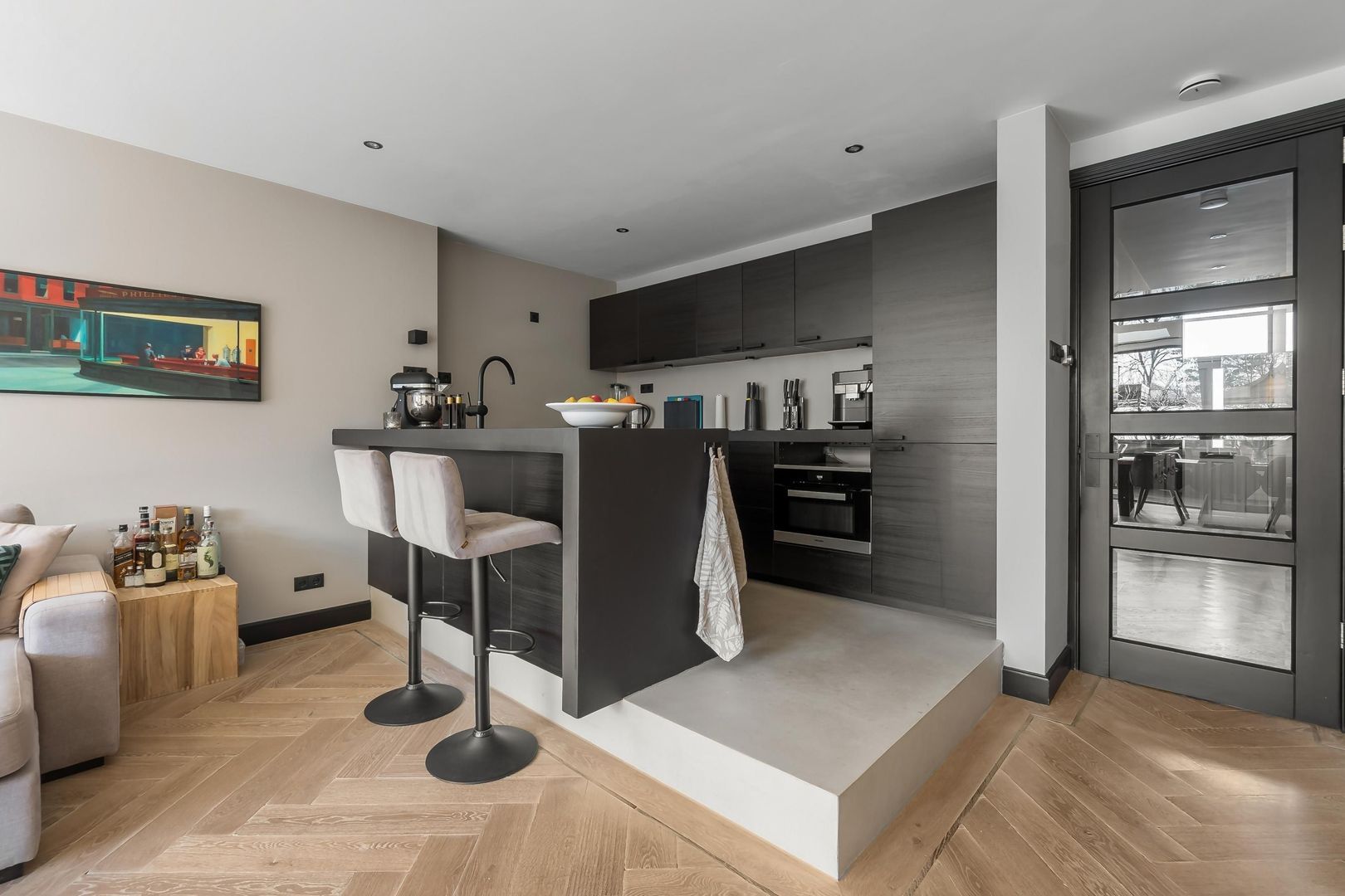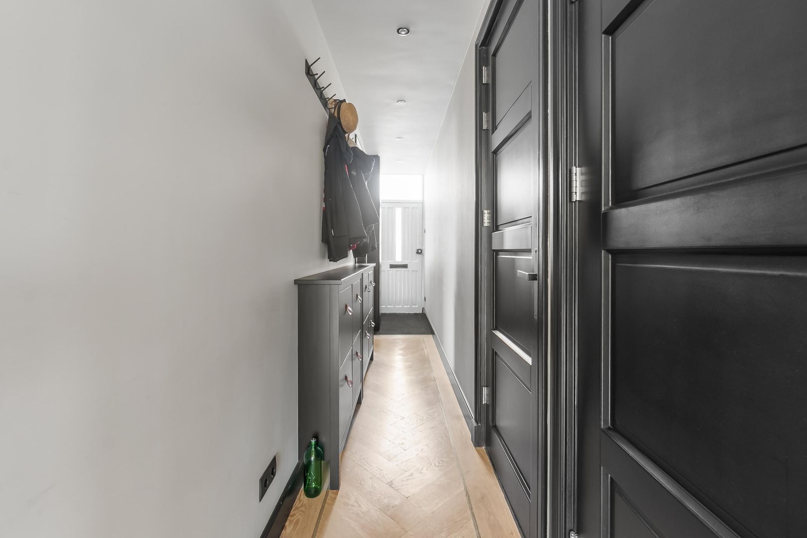Bij binnenkomst kom je in de hal met een praktische trapkast en een modern toilet. De sfeervolle woonkamer heeft een houten vloer en een schuifpui naar de achtertuin. De open keuken is uitgerust met een spoeleiland en Miele inbouwapparatuur. De slaapkamer bevindt zich aan de voorzijde en de badkamer beschikt over een inloopdouche, wastafel en designradiator.