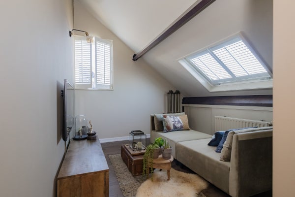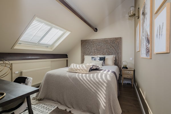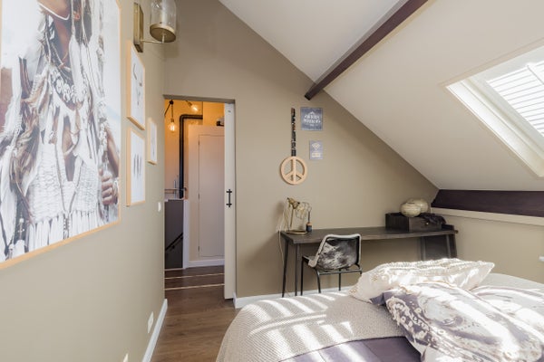 Er zijn twee ruime, gezellige slaapkamers voorzien van FAKRO dakramen. Eén van de kamers is ingericht als knusse lounge-/tv-kamer – een perfecte plek om te chillen of te gamen.