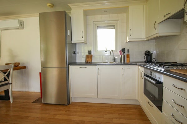 - De vrijstaande woning heeft een woonoppervlakte van 70 m² en beschikt over 3 kamers, waarvan 2 slaapkamers;