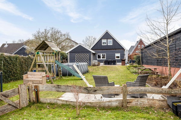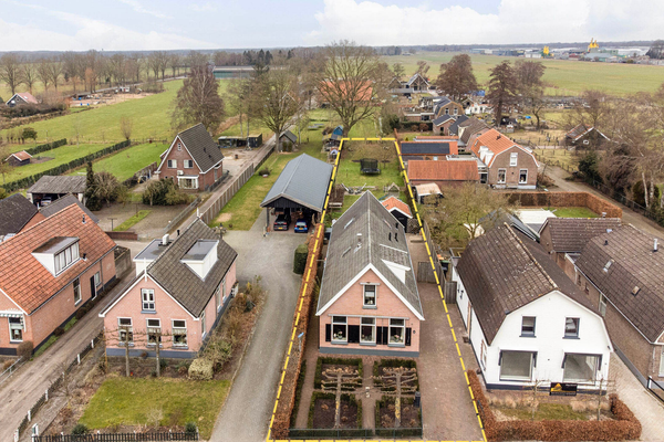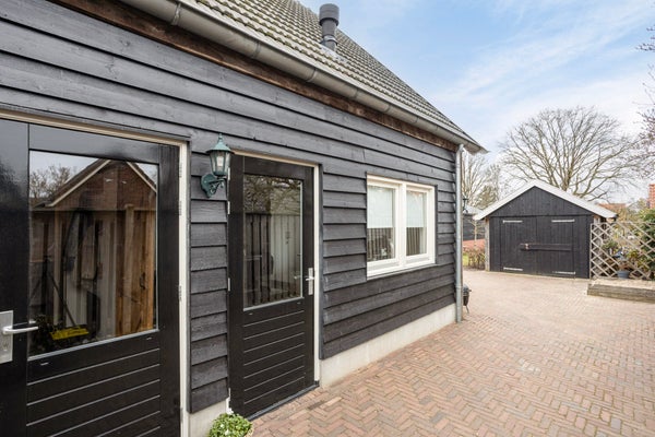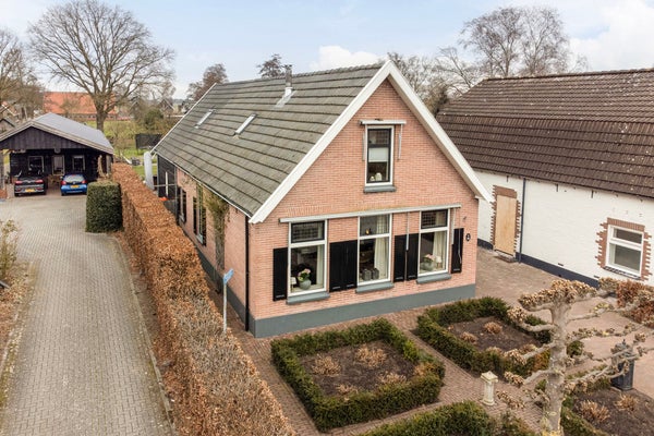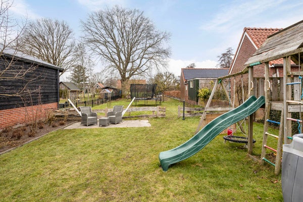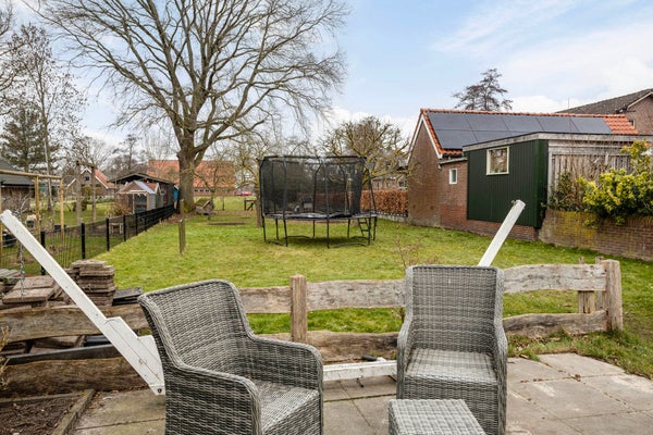 De woning ligt op een ruim perceel en heeft een tuin rondom. Achter het huis zit je heerlijk op het terras en geniet je van de royale tuin met boomgaard, grasveld en volop plek voor een zwembad, speeltoestel en trampoline. Je hebt zelfs ruimte voor kleinvee zoals kippen of geitjes. De houten garageschuur met dakpannen sluit aan bij dezelfde Twentse stijl van de uitbouw. Dankzij de grondwaterpomp is tuinieren hier praktisch geregeld. Parkeren doe je op eigen terrein, met ruimte voor drie auto’s.