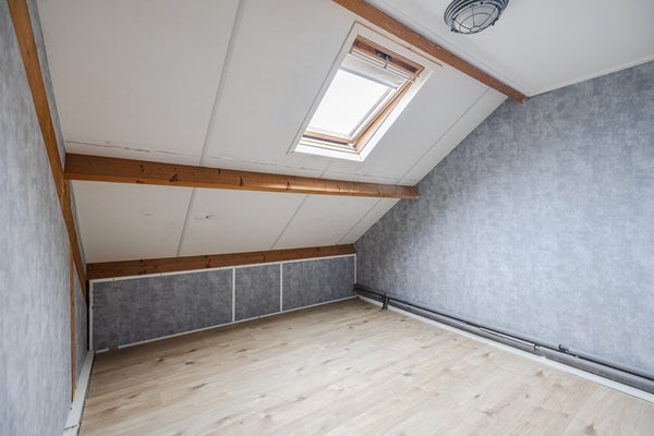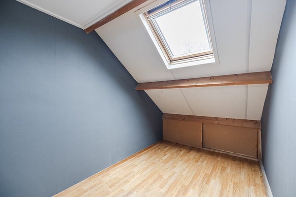 Bereikbaar met vaste trap naar ruime zolderruimte met opstelplaats voor de cv-ketel, bergruimte achter de knieschotten en 2 afzonderlijke slaapkamers ieders met een dakraam.
